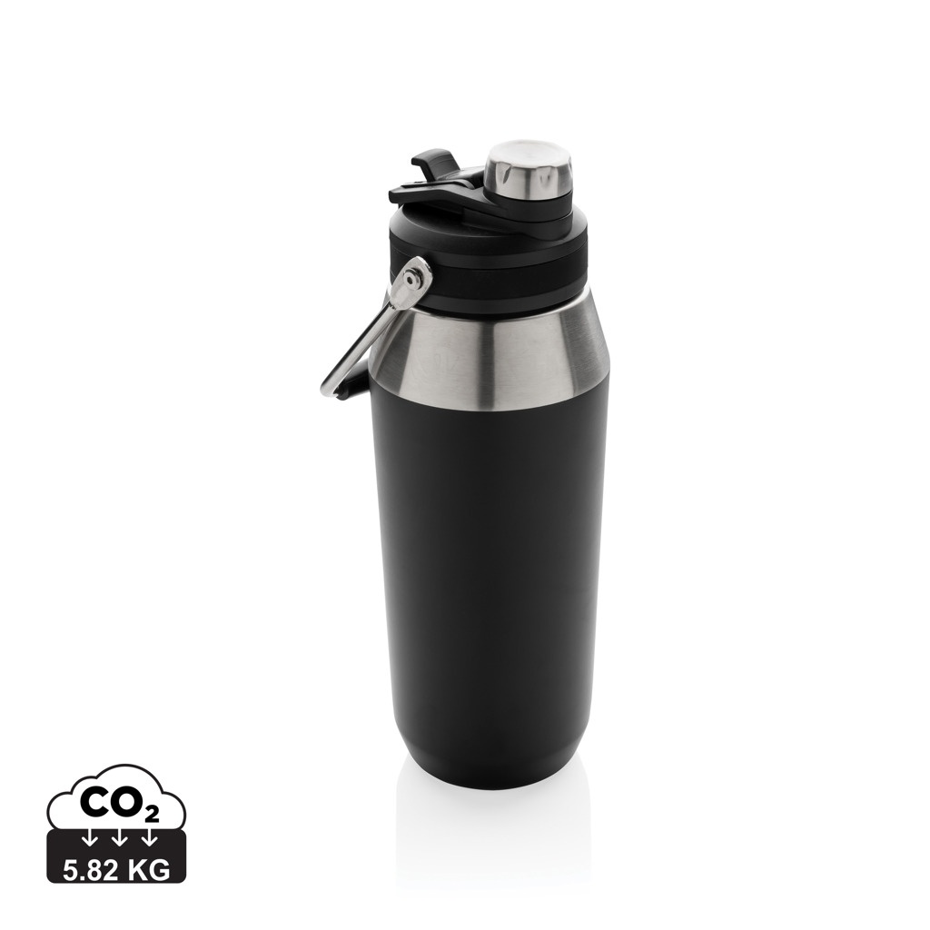 1L Vakuum StainlessSteel Flasche mit Dual-Deckel-Funktion, Schwarz