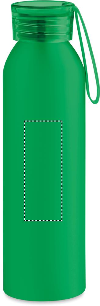 Einwandige Flasche aus recyceltem Aluminium mit Verschluss aus PS mit Silikon-Schlaufe. Füllmenge: 600 ml. Auslaufsicher.