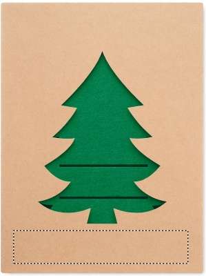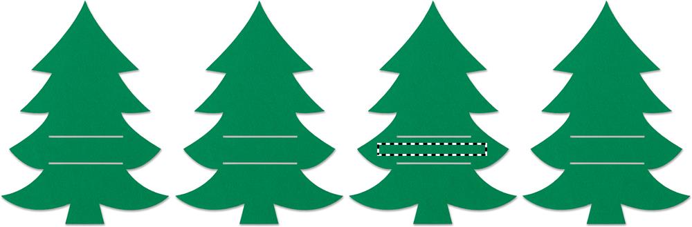 Set mit 4 Besteckhaltern aus RPET-Filz in Form eines Tannenbaums. Lieferung in einer Schachtel aus Kraftpapier.