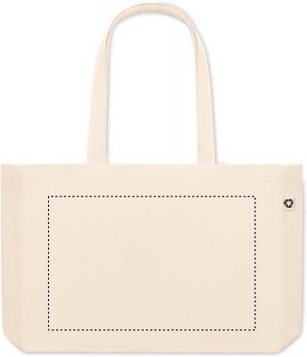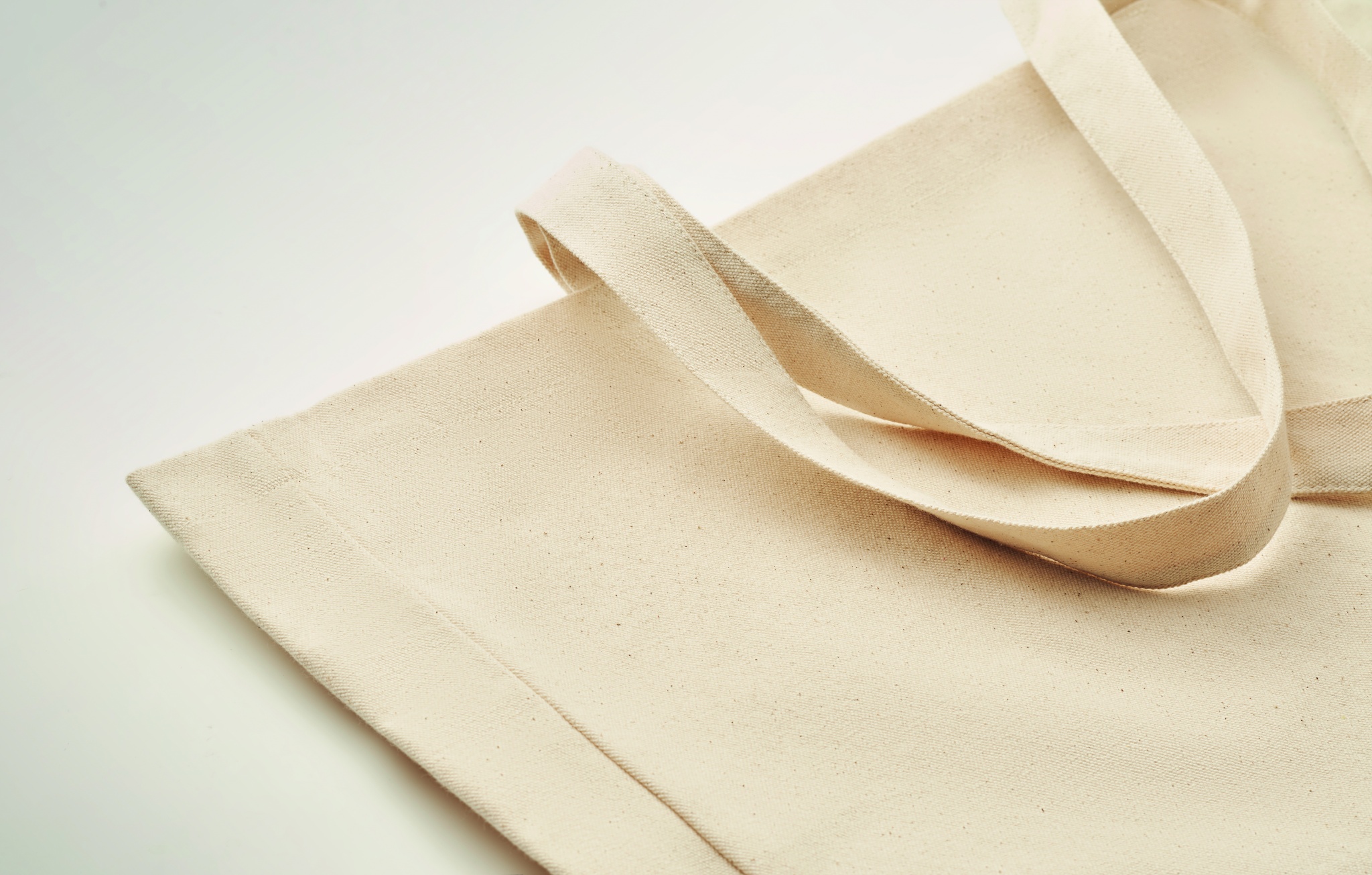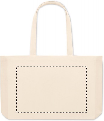 Canvas Einkaufstasche oder Strandtasche aus 50% Baumwolle/50% recycelter Baumwolle mit langen Tragegriffen und Bodenfalte. 280 g/m².