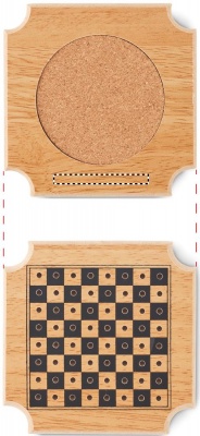Set of 4 coasters made of cork and MDF including a 4 game set: Tic-Tac- Toe, Backgammon, Chess and Chinese checkers. Cork is 100% natural material. Due to its structural nature and surface porosity the final print result per item may have deviations.