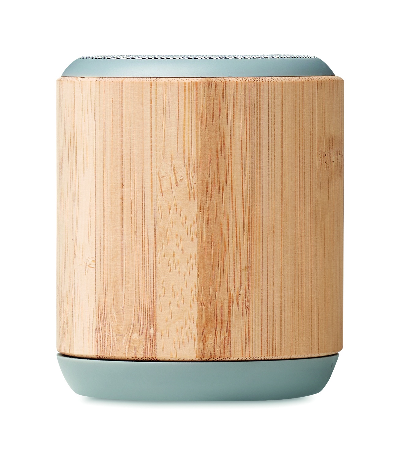 5.3 wireless speaker in bamboo cover and ABS on top with PU strap. 1 Rechargeable Li-Ion 300 mAh battery. Output data: 3W, 4 Ohm. Playing time approx. 2h. Bamboo is a natural product, there may be slight variations in colour and size per item, which can affect the final decoration outcome.