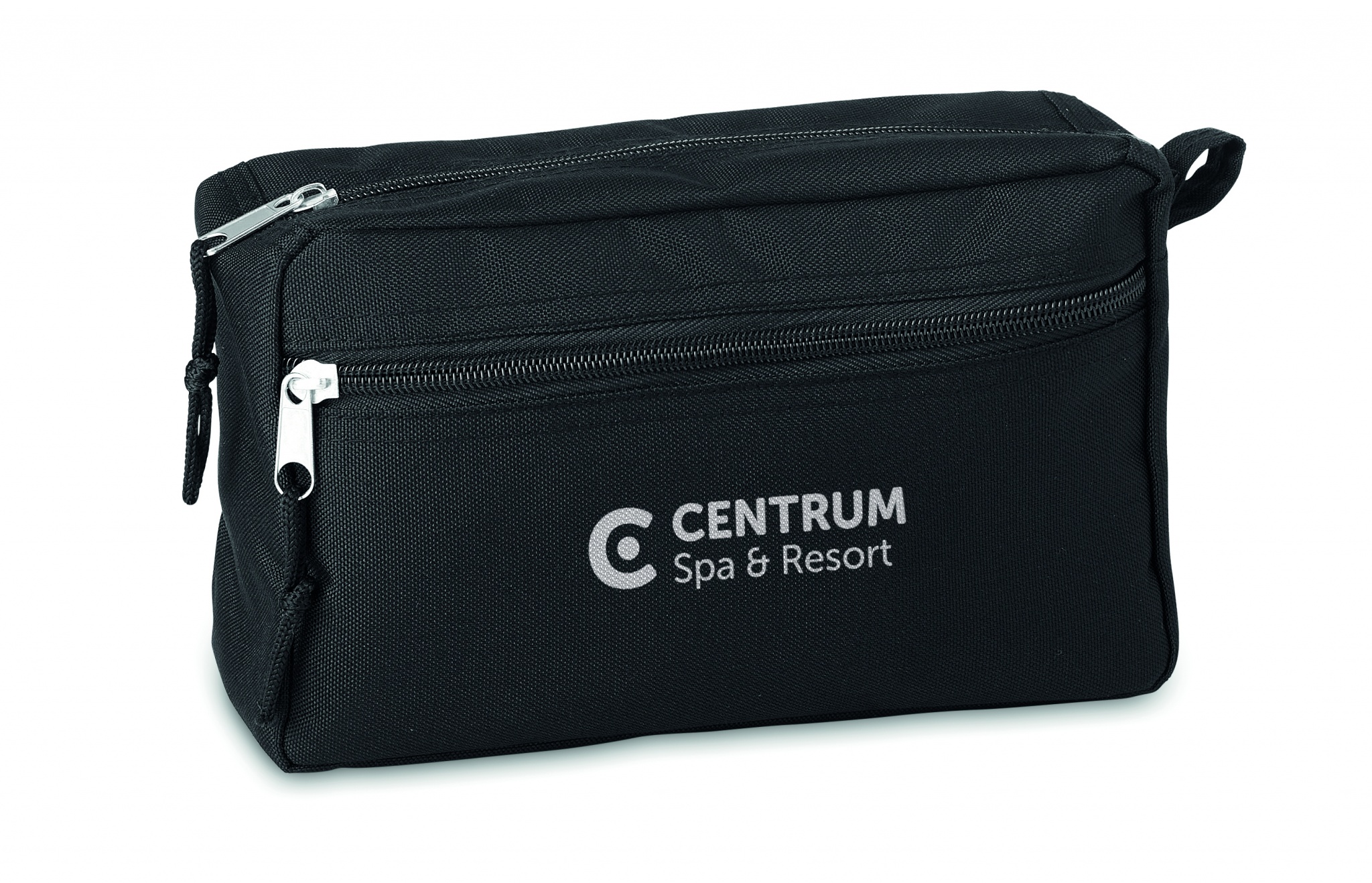 Cosmetic bag with double zipper. 600D RPET.