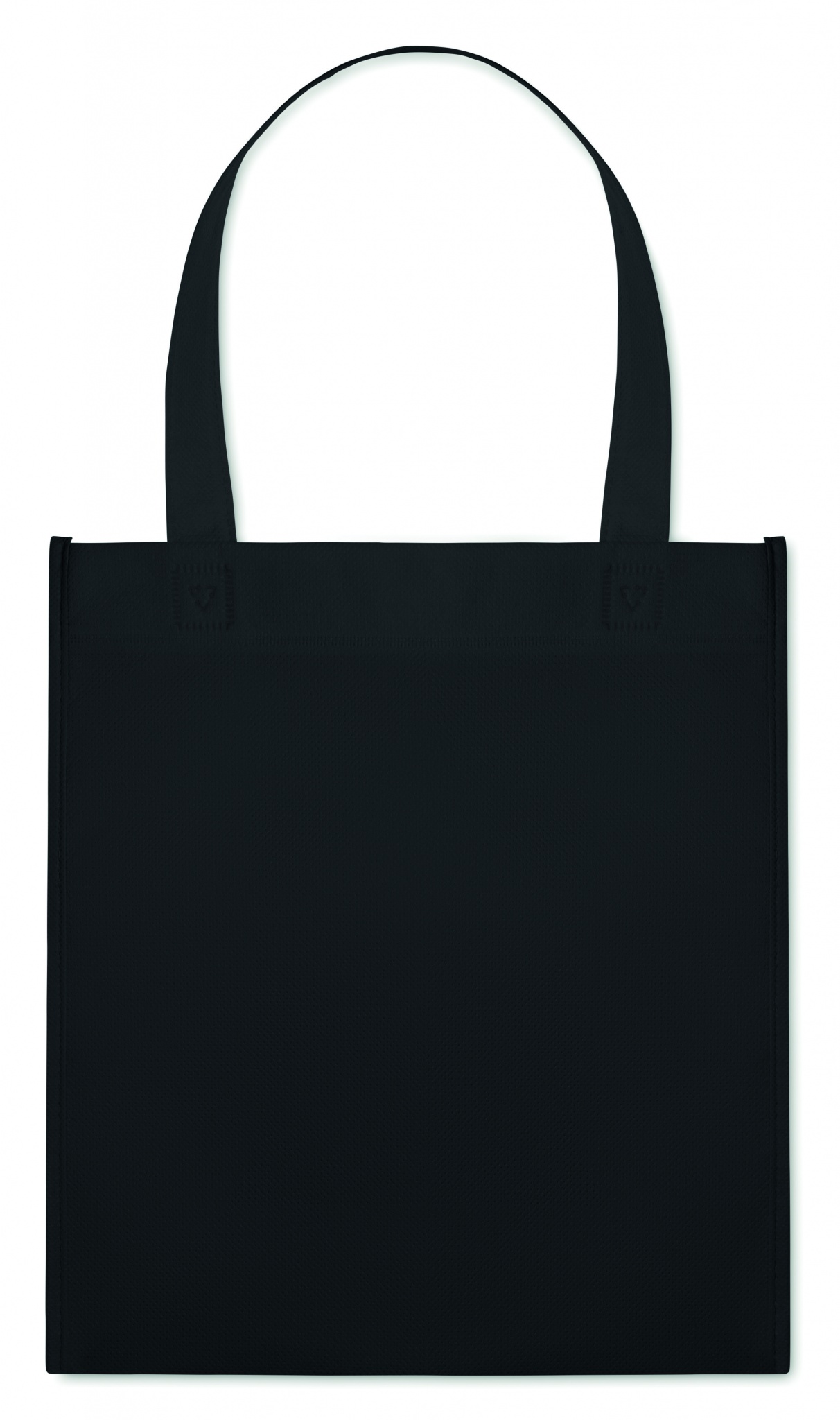Nonwoven heat sealed shopping bag with short handles. 80 gr/m².