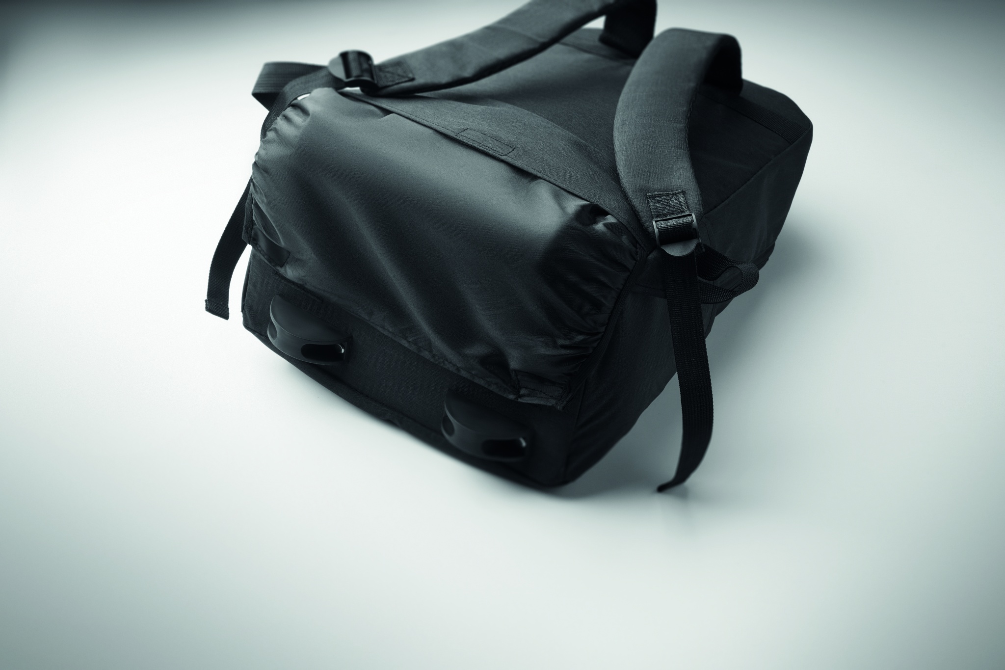 A portable backpack trolley with wheels, made of 600D RPET polyester, Black