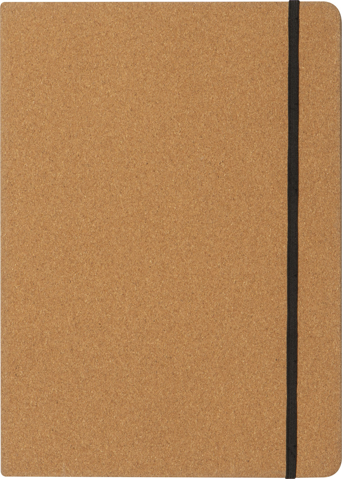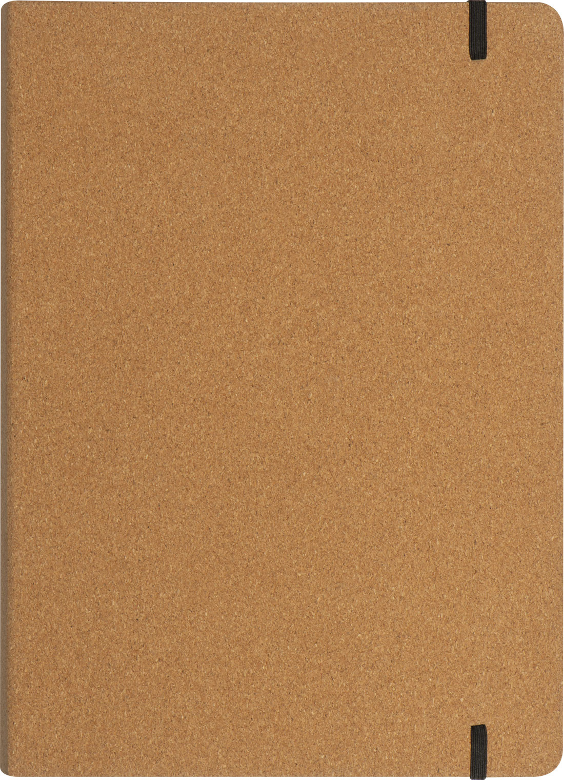 A4 document folder made of cork. The folder features three pockets and a pen loop, as well as a notepad with 120 pages of recycled paper, lined on one side (blank on the back). Stylish and eco-friendly for your important documents.
