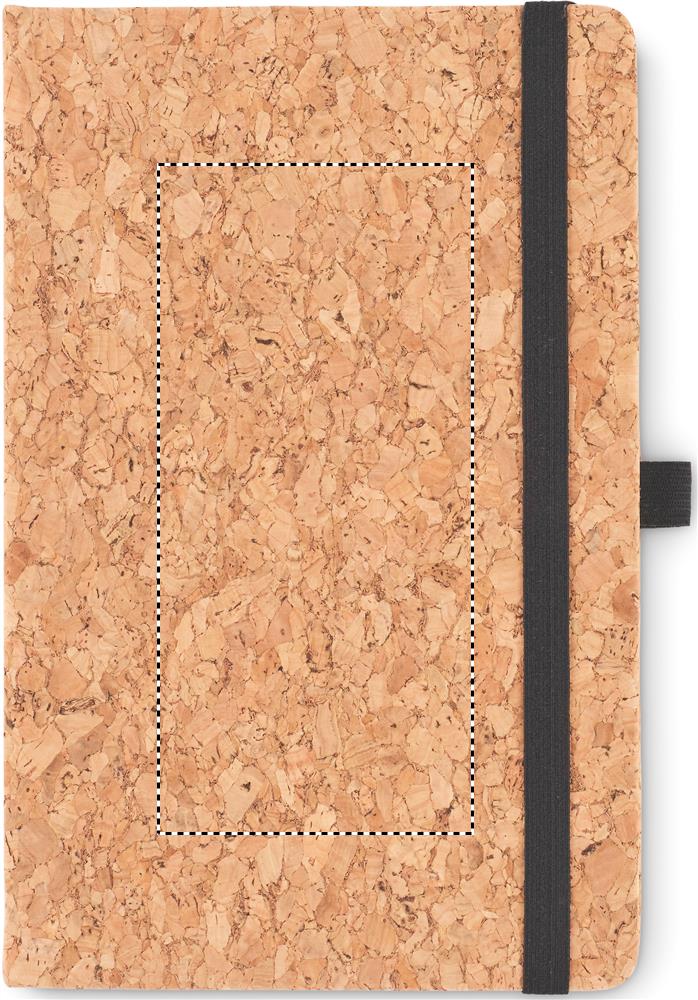 A5 cork notebook with matching pen. Hard cork cover. Casebound. 160 lined pages (80 sheets). Elastic closure strap and pen holder. Matching push button ball pen with cork barrel and 50% wheat straw and 50% PP details. Presented in a gift box. Cork is 100% natural material. Due to its structural nature and surface porosity the final print result per item may have deviations.
