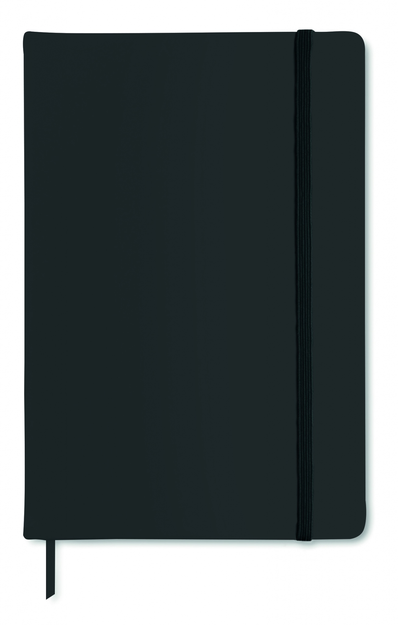 A5 notebook with hard PU cover. Casebound. 192 plain pages (96 sheets). Matching elastic closure strap and ribbon page-marker.