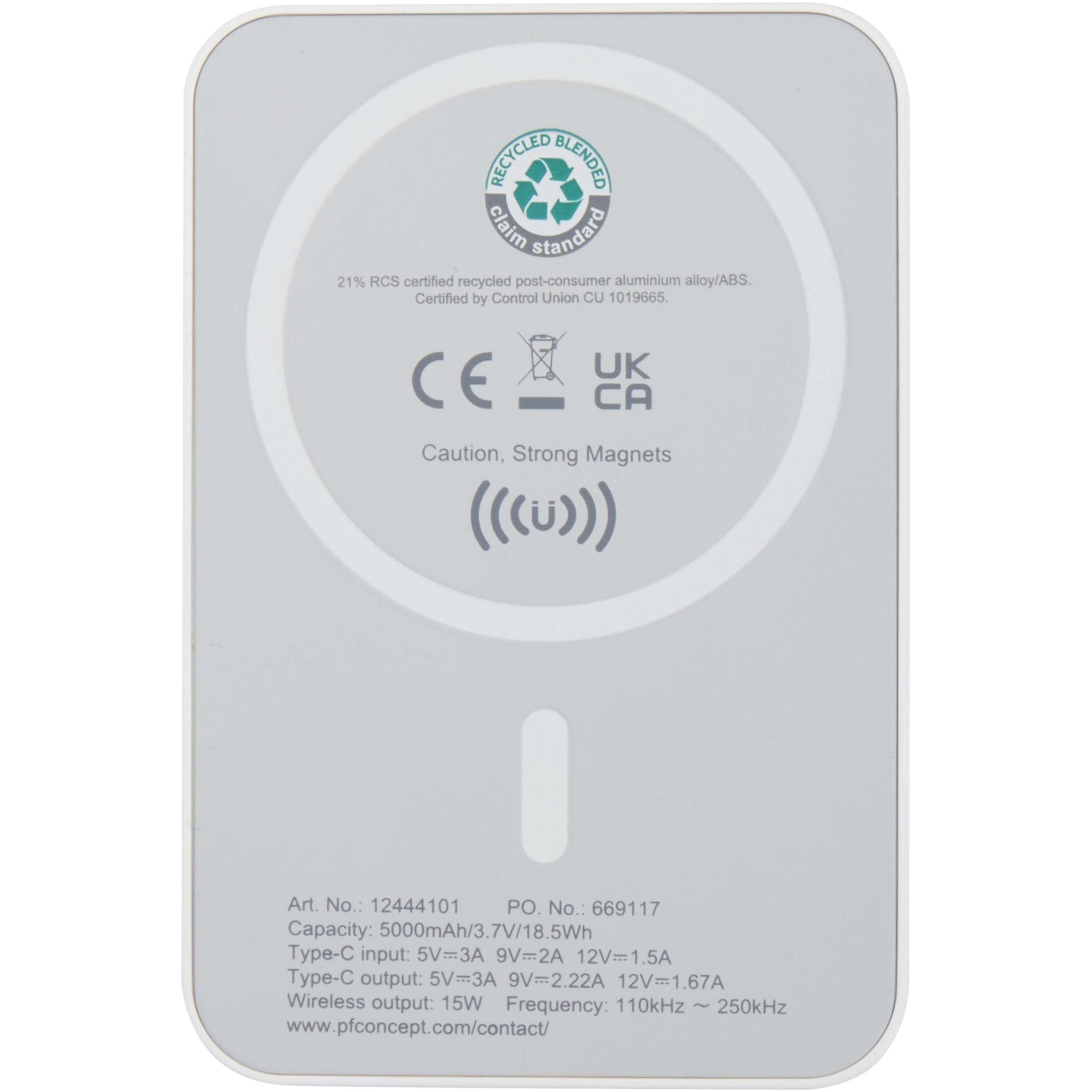 Acrab 5000 mAh 15W magnetic wireless power bank with 20W PD - made from recycled plastic, White