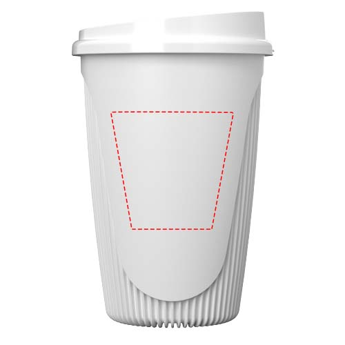 The Alto 350 ml tumbler is a sophisticated and stylish single-walled drinking vessel featuring insulating ridges for safe and comfortable handling. It has an elegant clip-on lid with an unobtrusive relief, providing a tactile method for locating the drinking spout. Both the lid and vessel are made of fully recyclable plastics. Enjoy your favourite hot beverages in both comfort and style.