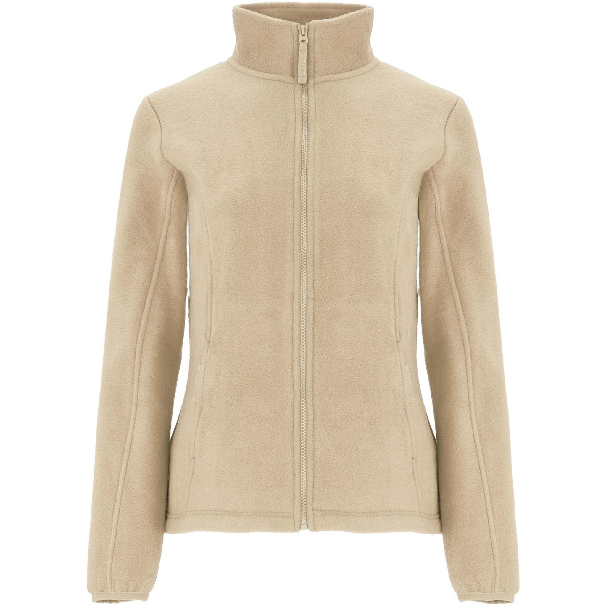 Fleece jacket with high lined collar and matching reinforced covered seams. Injected zip with matching puller made of fabric. Cuffs with elastic trim. Side pockets. Fitted-cut. Bottom hem with inner side adjusters. Removable label. The model is 179 cm and is wearing size S.