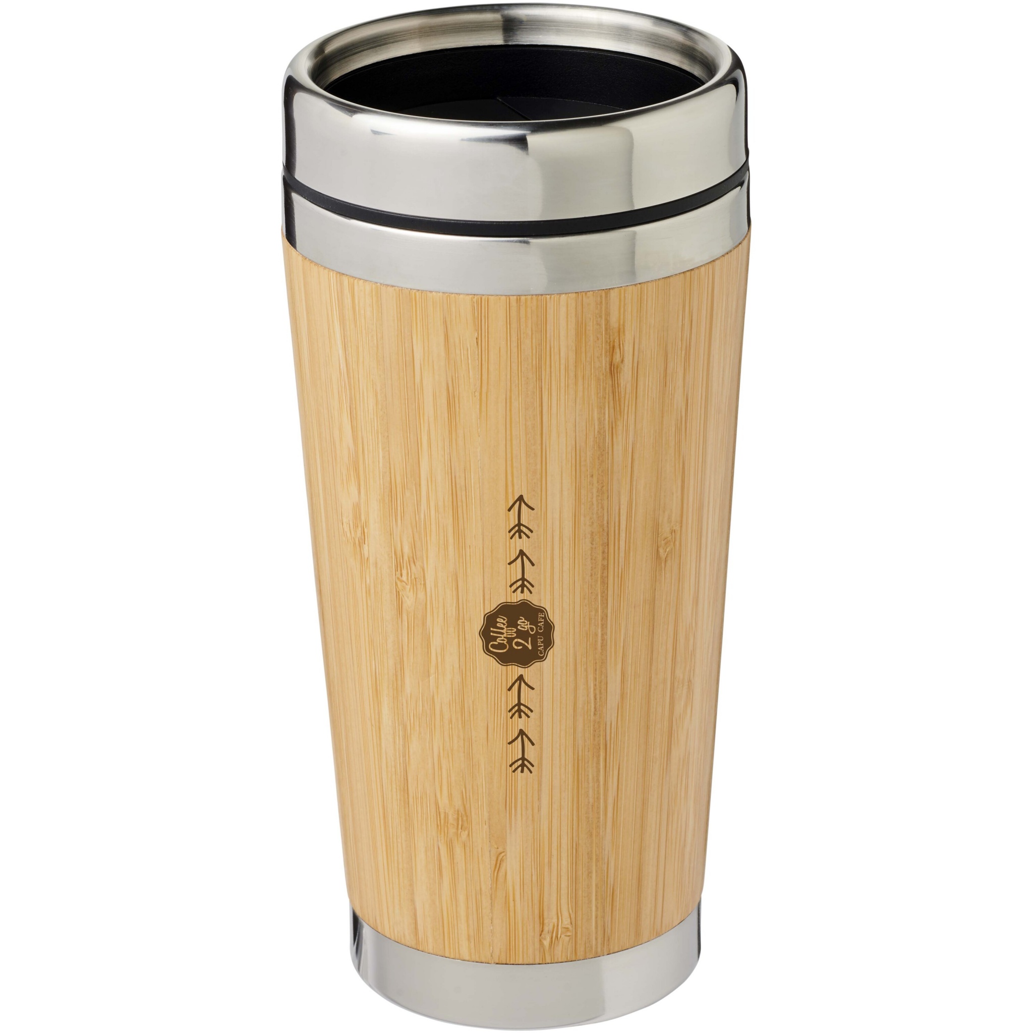 Double-walled insulated tumbler made from stainless steel and finished with a natural bamboo outer. It can keep drinks hot for up to 2 hours and cold for up to 4 hours. Drinking from it is easy with the press-on lid with sliding cover to close.