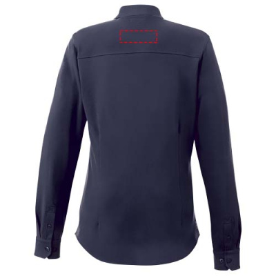 Self fabric collar. Stretch fabric. Adjustable cuff with single pleat. Button-down collar. Shaped seams and tapered waist for flattering fit. Satin piping at inside neck. Dyed-to-match engraved buttons. Woven main label.