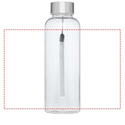 Single-walled water bottle in durable material with screw-on lid. Shatter, stain, and odour resistant. Lid features a strap for easy carrying. BPA free. Volume capacity is 500 ml.