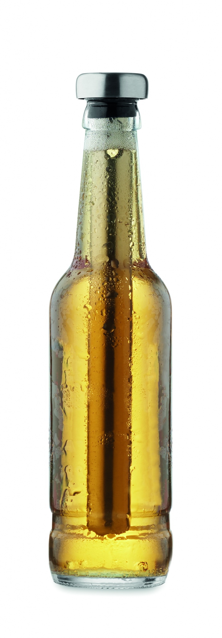 Stainless steel bottle opener and drink chiller stick. Freeze chiller stick for ca. 45 minutes and then insert it in a bottle and enjoy your cold drink.