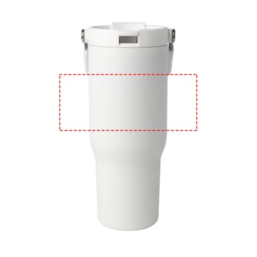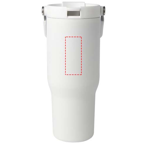 The Bronx 900 ml tumbler is made from RCS certified stainless steel and has a double-walled vacuum construction with copper insulation. The lid has a dual function with a collapsible straw for easy sipping, and a flip-top opening with a convenient folding handle for effortless portability. Fits most car cup holders. Packed in a recycled cardboard gift box.