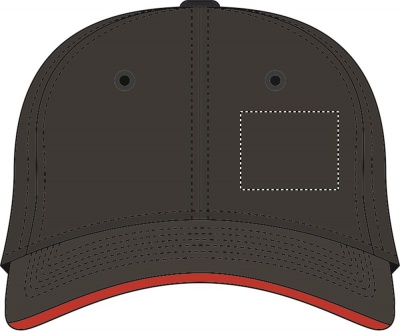 6 panel baseball cap in brushed heavy cotton 270 gr/m2 with adjustable metal buckle with tuck-in slit. With coloured sandwich peak. Size 7 1/4.
