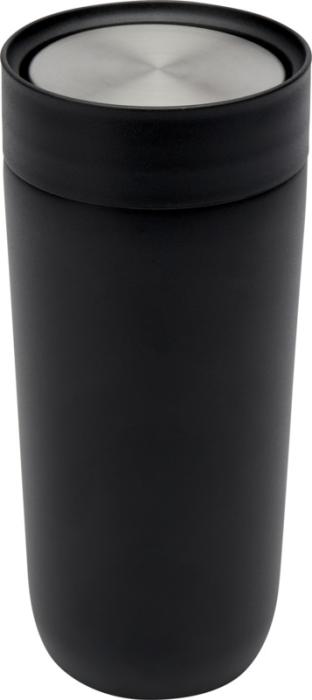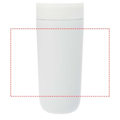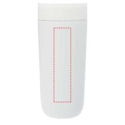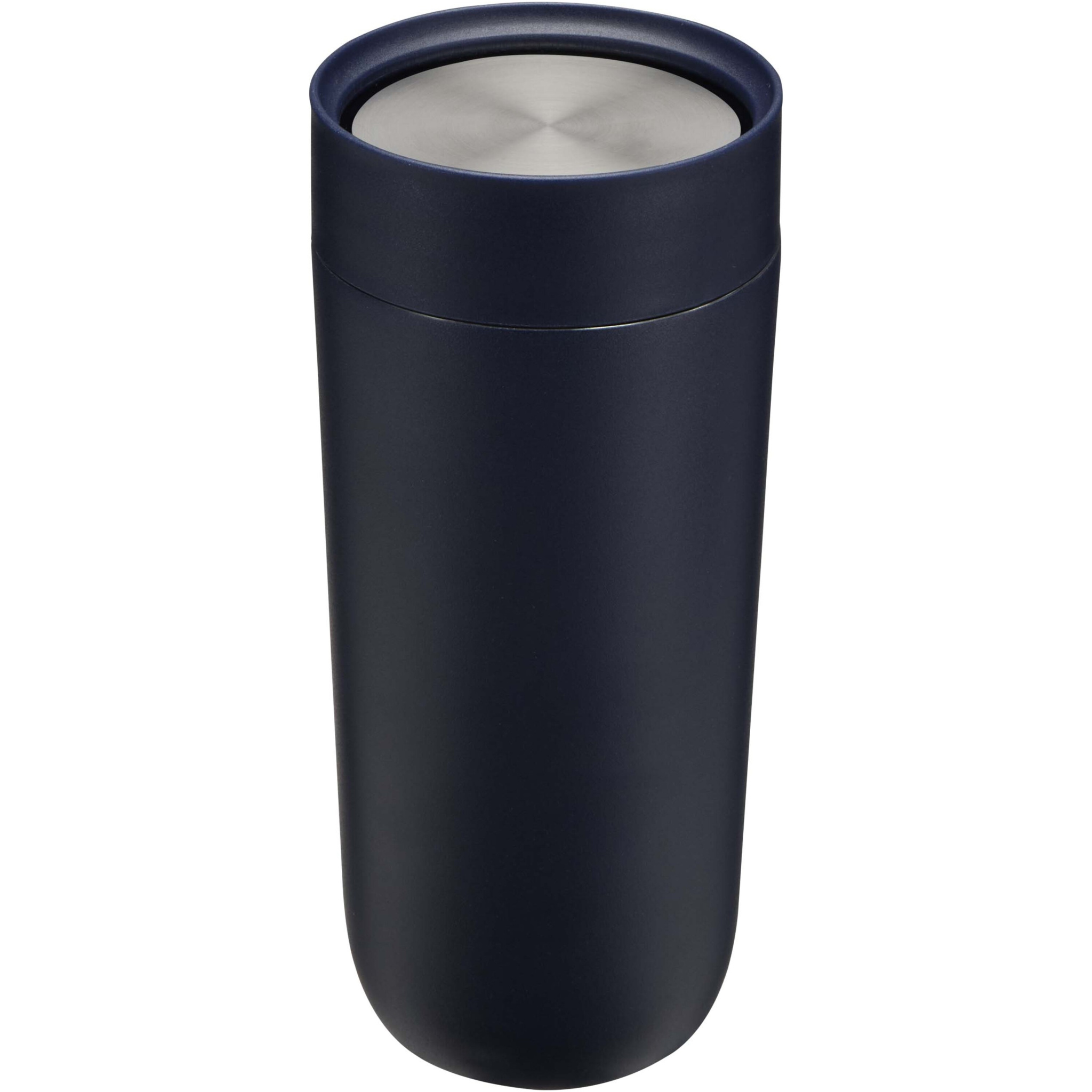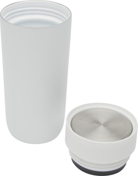 Premium to-go tumbler with a handy stainless steel push-top opening mechanism that allows for one-hand operation. RCS certified stainless steel body with a durable power coating. The lid is made of RCS certified stainless steel and PP plastic. Copper plating and ceramic lining. Fits most common car cup holders. Keeps drinks 12 hours hot or 24 hours cold. Presented in a recycled cardboard gift box. Volume capacity: 350 ml.