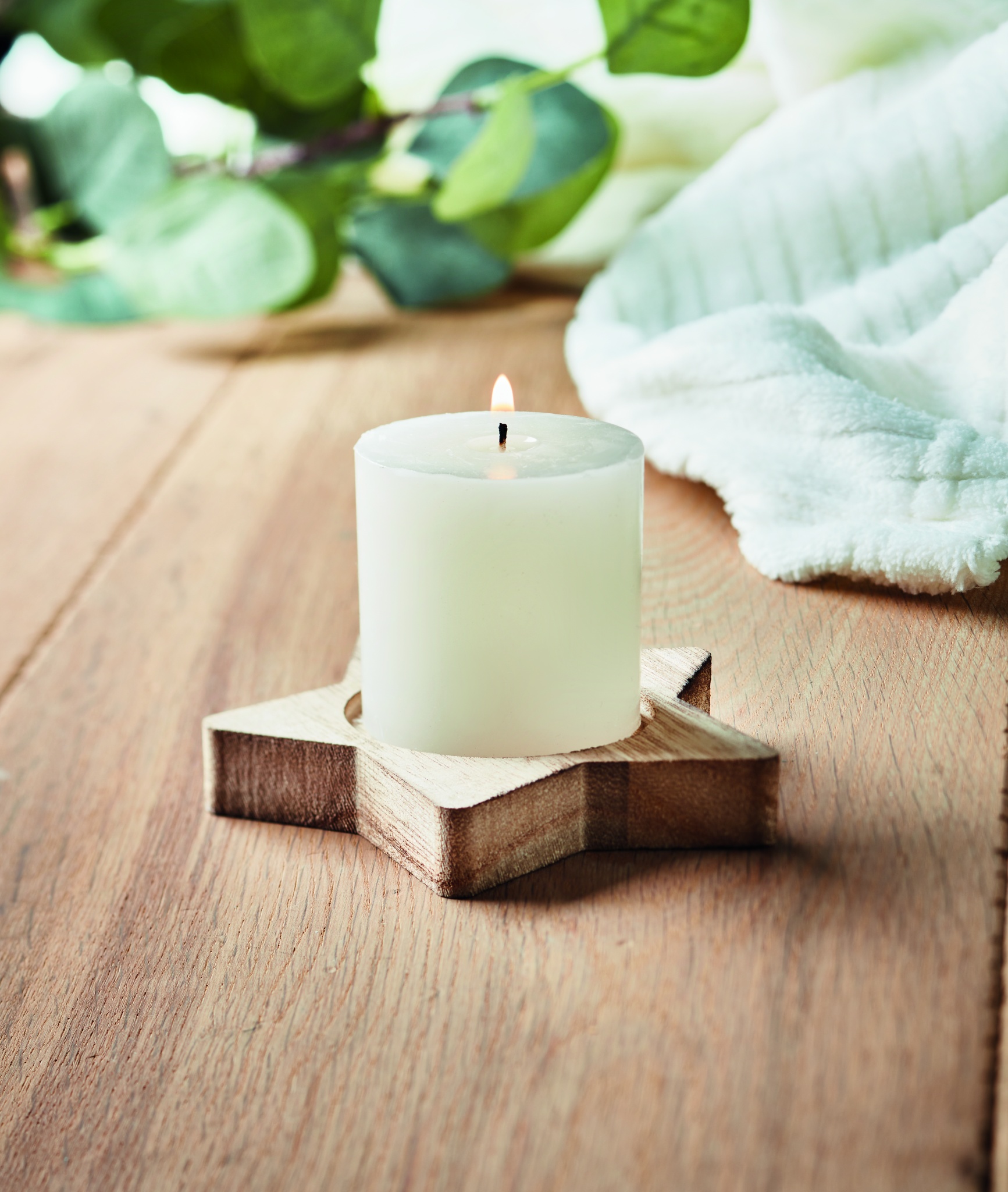 Candle on star wooden base