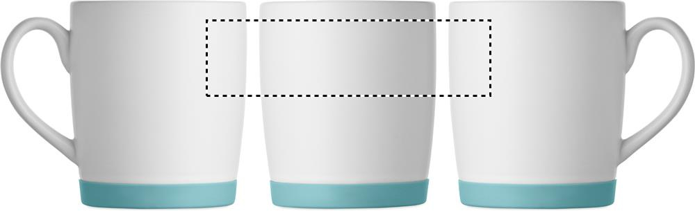 Ceramic mug with white matt finish and silicone base for stability. Capacity 300ml. Individual packing in white carton box.