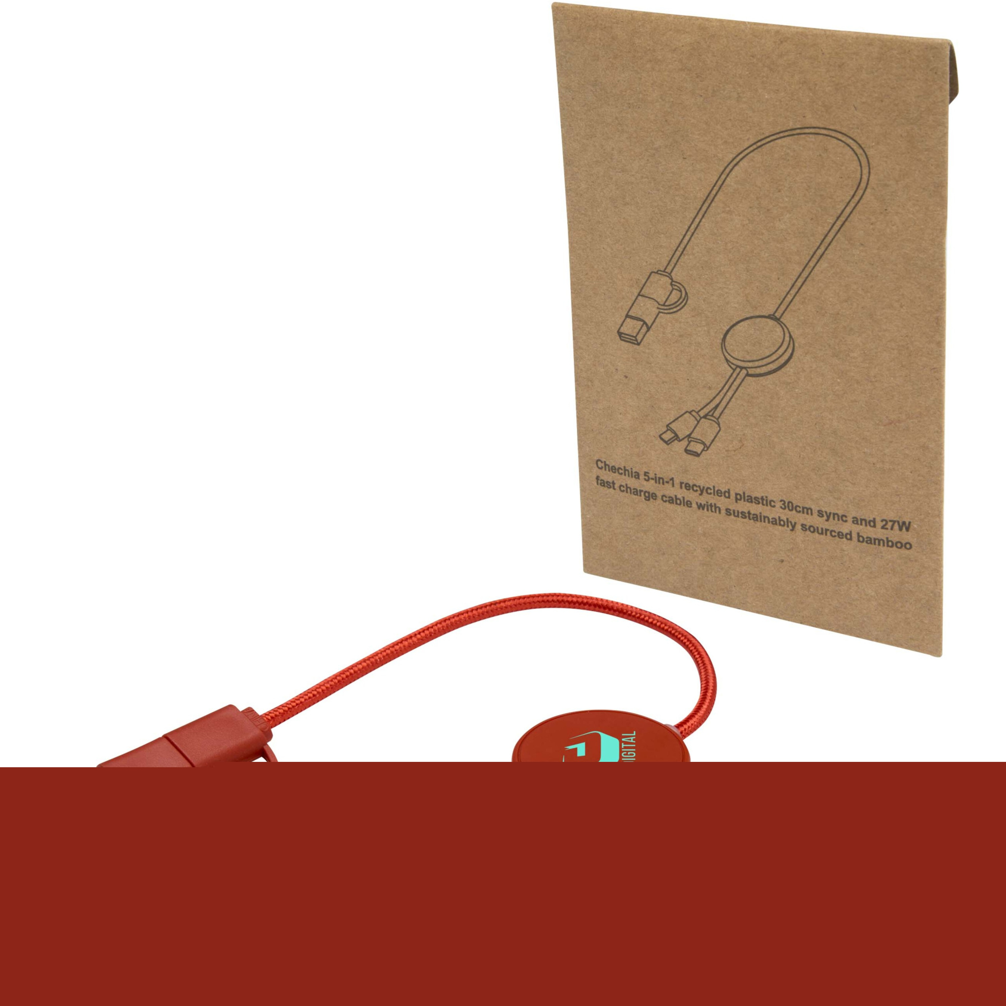 Citala 5-in-1 recycled plastic 30 cm data sync and 27W fast charge cable, Brick