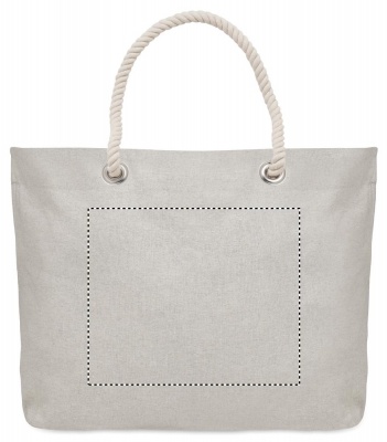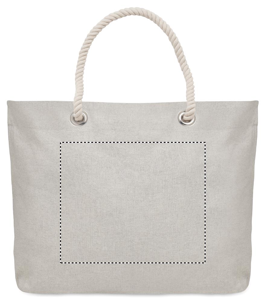Beach or shopping bag in recycled cotton (80% recycled cotton, 20% regular cotton) with cord handles. 220 gr/m².