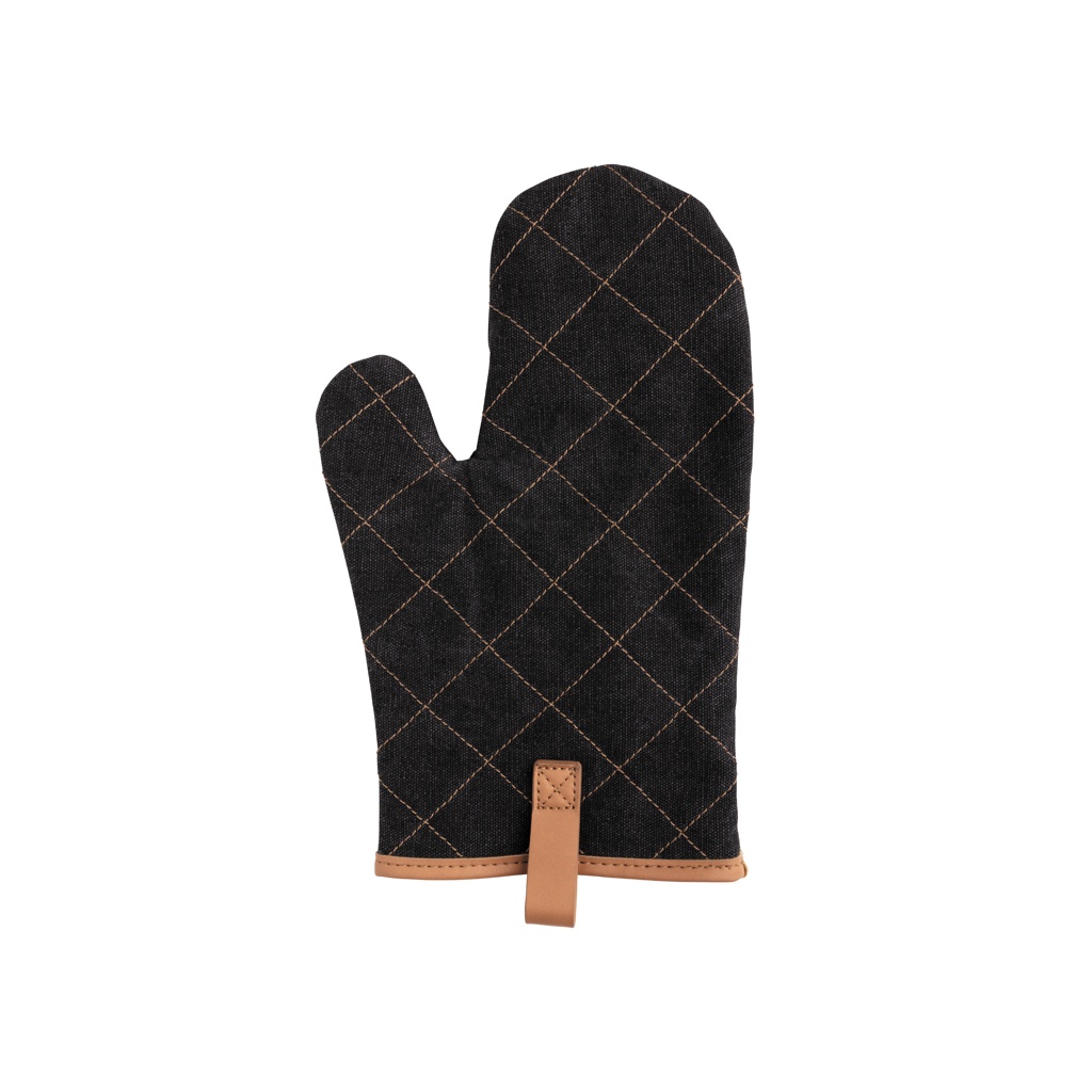 A handy companion in the kitchen, this quilted oven glove shields hands from hot objects. The separate thumb ensures a good grip, attached with decorative PU detail. Made with heavy quality 16oz. canvas. Supplied in a Kraft gift box. Machine wash at 30 degrees celsius with similar colours.