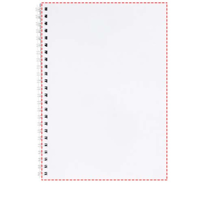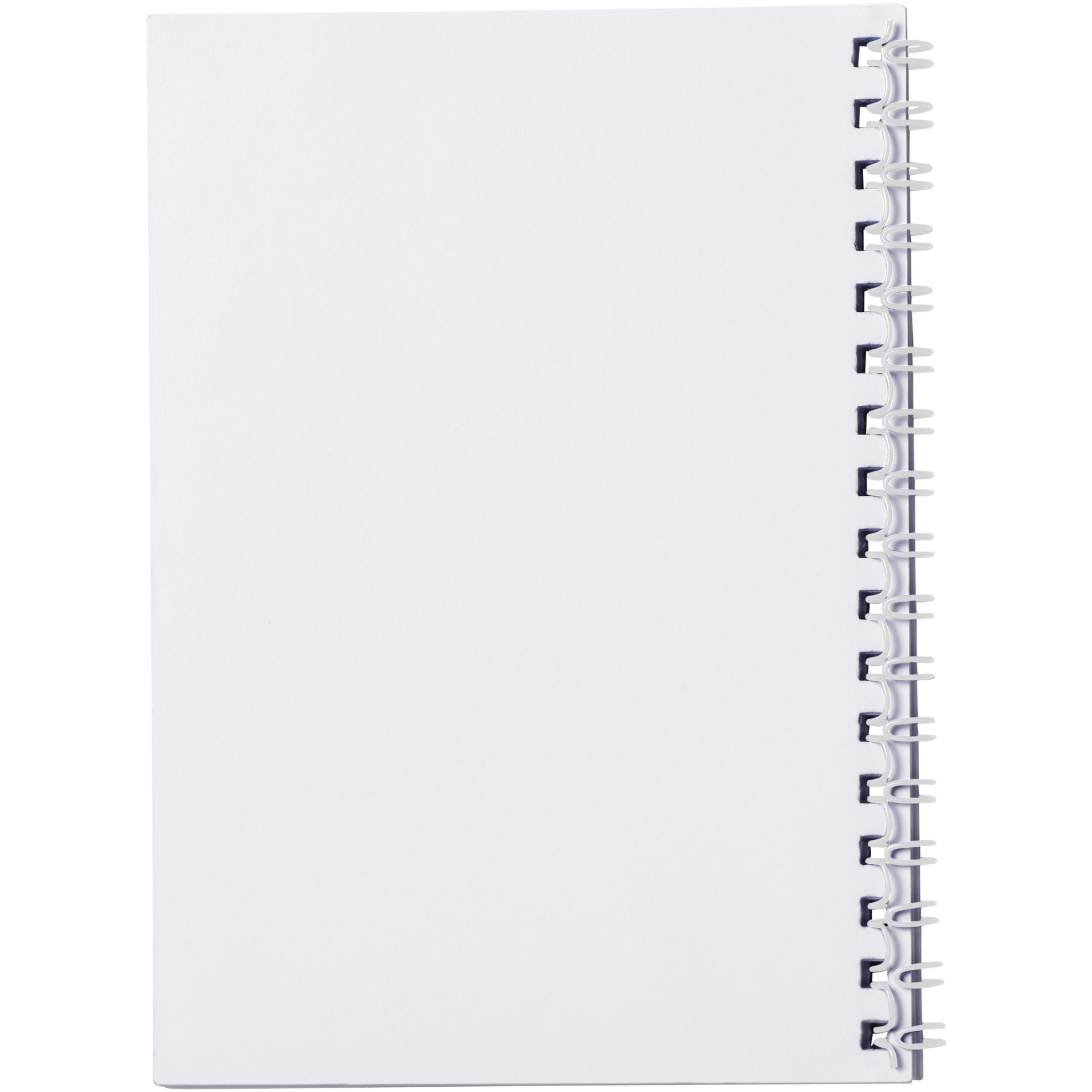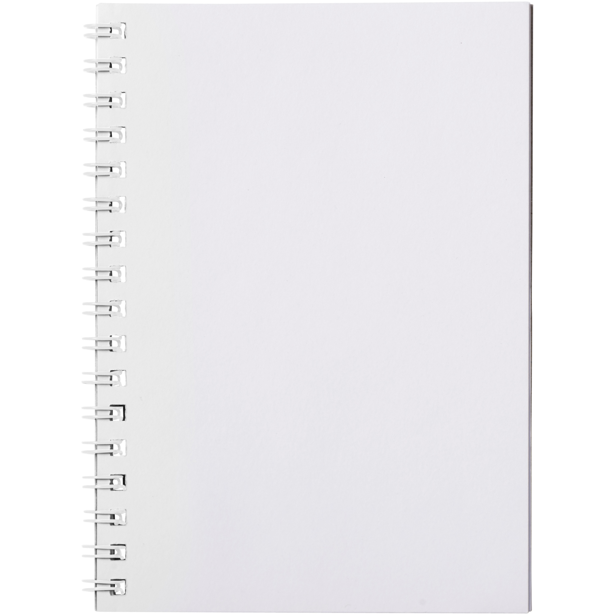 Desk-Mate® spiral A6 notebook. Includes 50 blank sheets of 80g/m2 paper, a glossy card front cover (250 g/m2) and a 450 micron transparent polypropylene cover. Black or white wire. You can customise the pages of this versatile notebook with any design - so whether you want lined paper, squares or dots - anything is possible!
