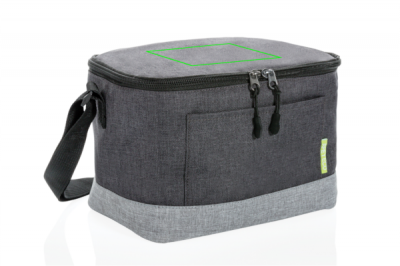 With a 6-can capacity, there is plenty of room to store your food and drinks. Additional features include a front pocket and shoulder strap. Made of sustainable RPET. Registered design® Exterior: 100% 600D melange RPET / Lining: 100% PEVA