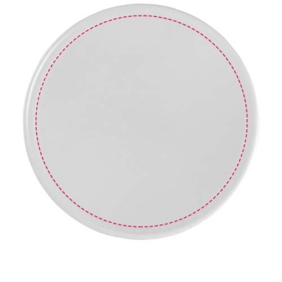 Two-part plastic coaster that carries a printed paper insert. Paper insert can be printed on both sides.