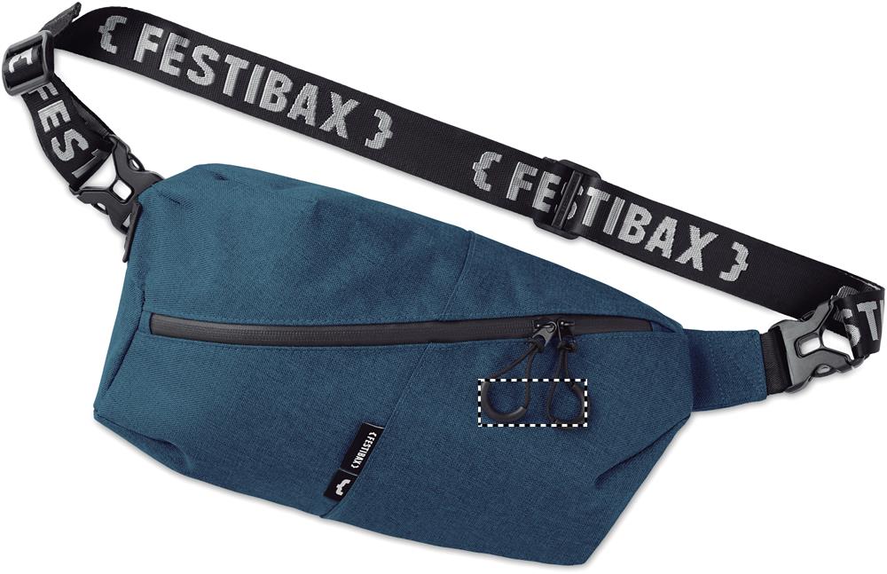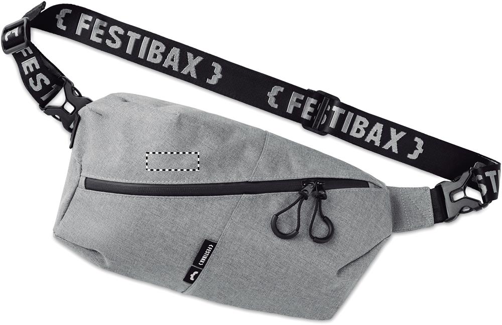 Festibax® Basic. 300D 2 tone cationic dyed polyester with zipper, detachable and adjustable strap. Including a front and back anti-theft compartment. The ultimate festival bag.