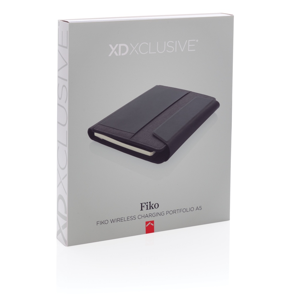Fiko wireless charging A5 portfolio with powerbank, black