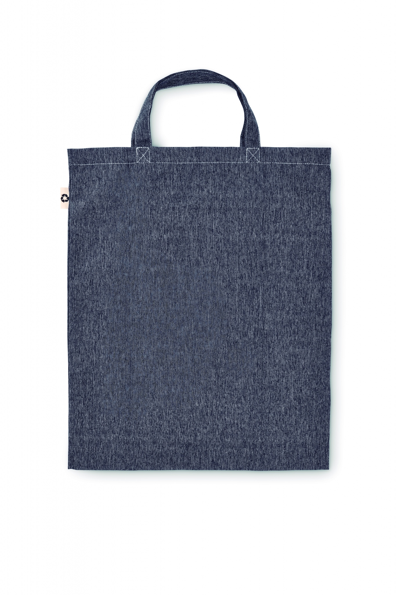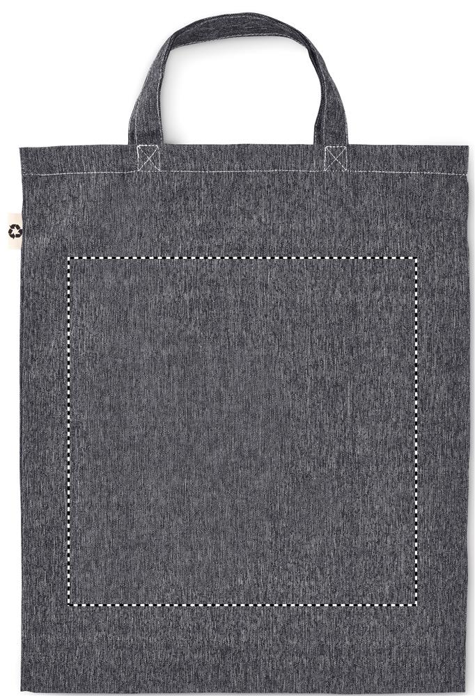 Foldable 2 tone recycled cotton and recycled polyester shopping bag with long handles (20%/80%). Approx. 140 gr/m². This item can shrink after printing.