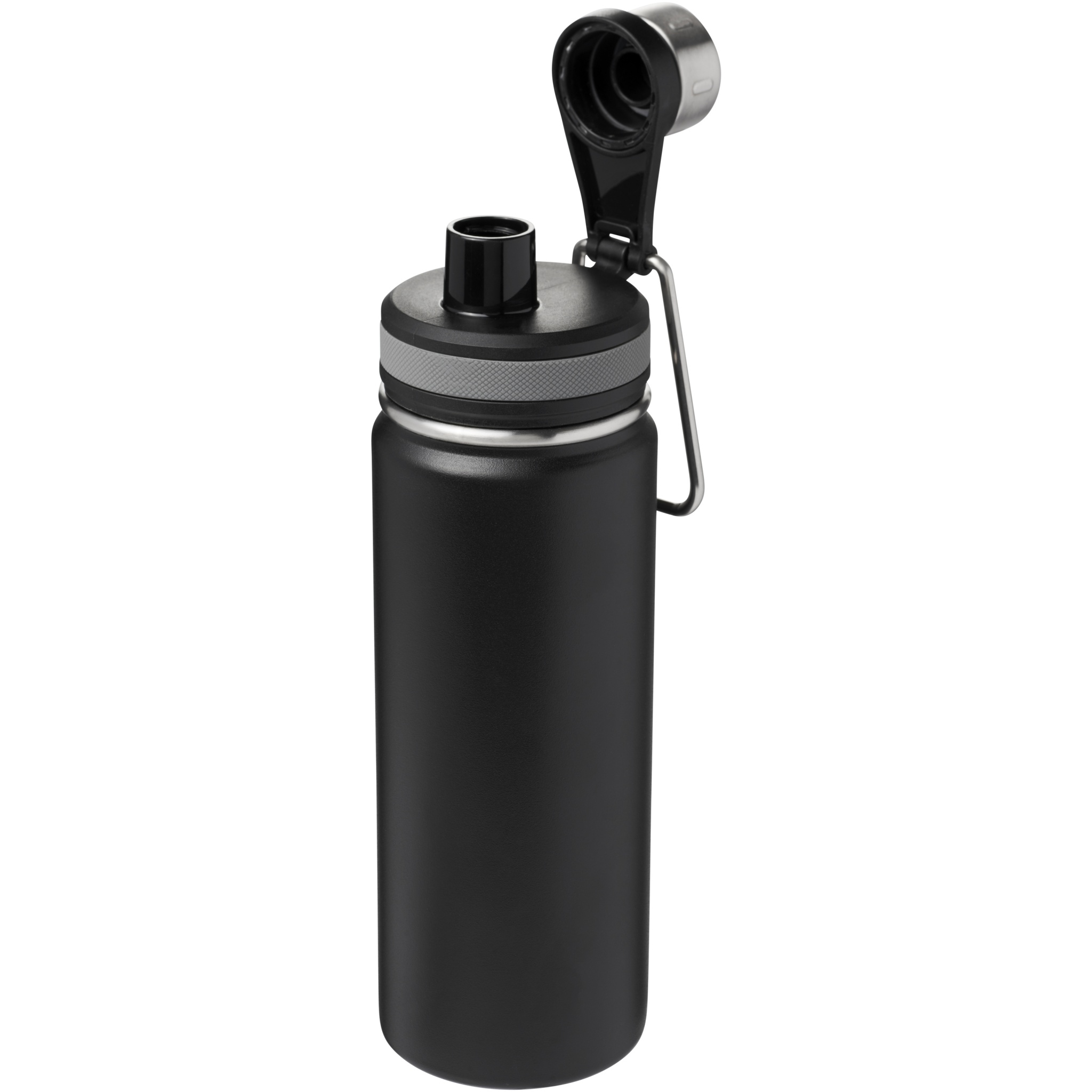 Double-walled stainless steel vacuum construction with copper insulation, which keeps beverages hot for at least 12 hours and cold for 48 hours. The construction also prevents condensation on the outside of the bottle. Features a screw-on top and stainless steel lid with a convenient handle for carrying. Dual opening construction for easy cleaning and filling. Volume capacity is 590 ml. Presented in an Avenue gift box.