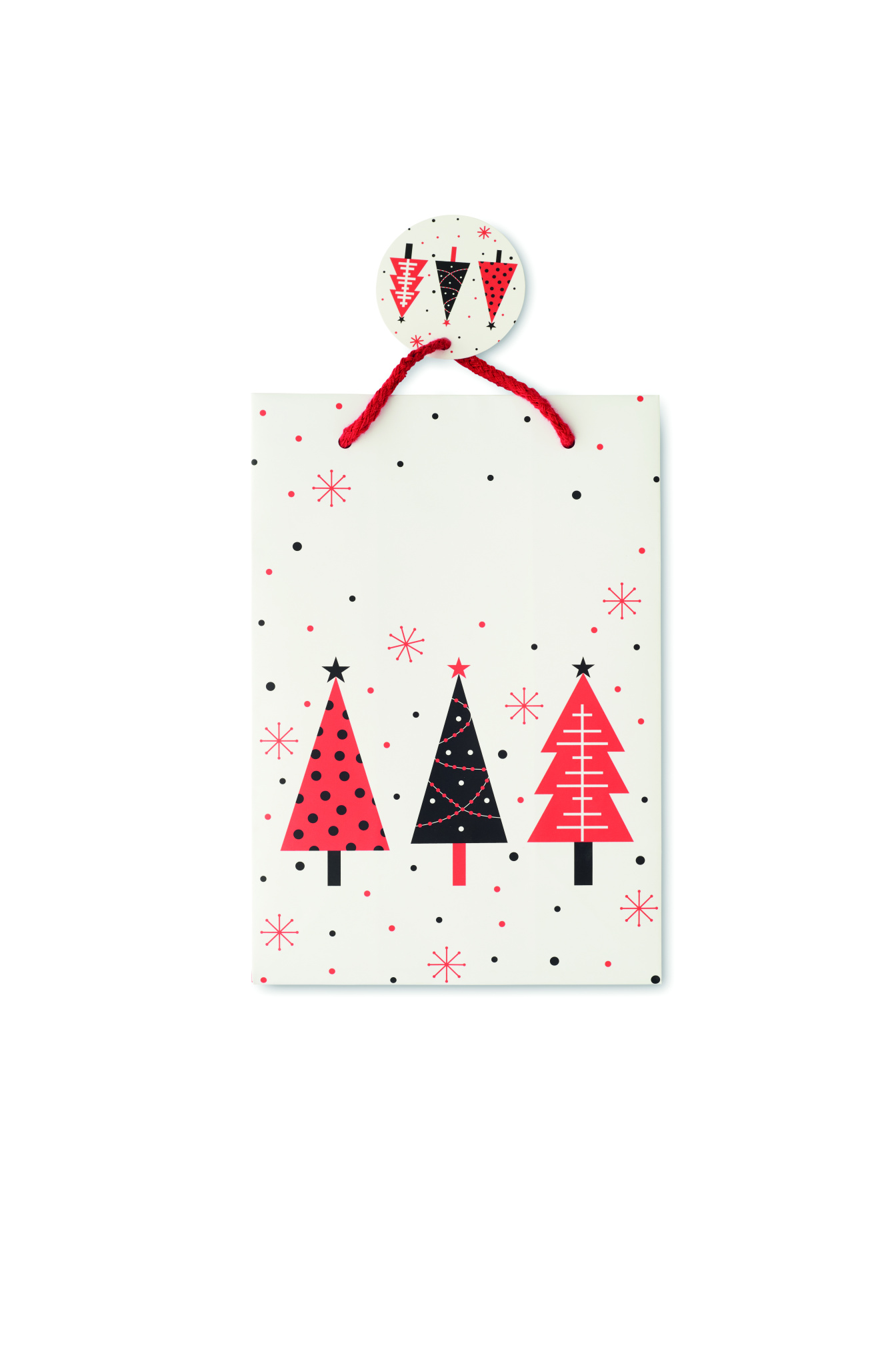 Christmas small gift paper bag (30% recycled) with tag included. 128 gr/m². FSC®-certified | FSC MIX, W5.3, FSC-C213206