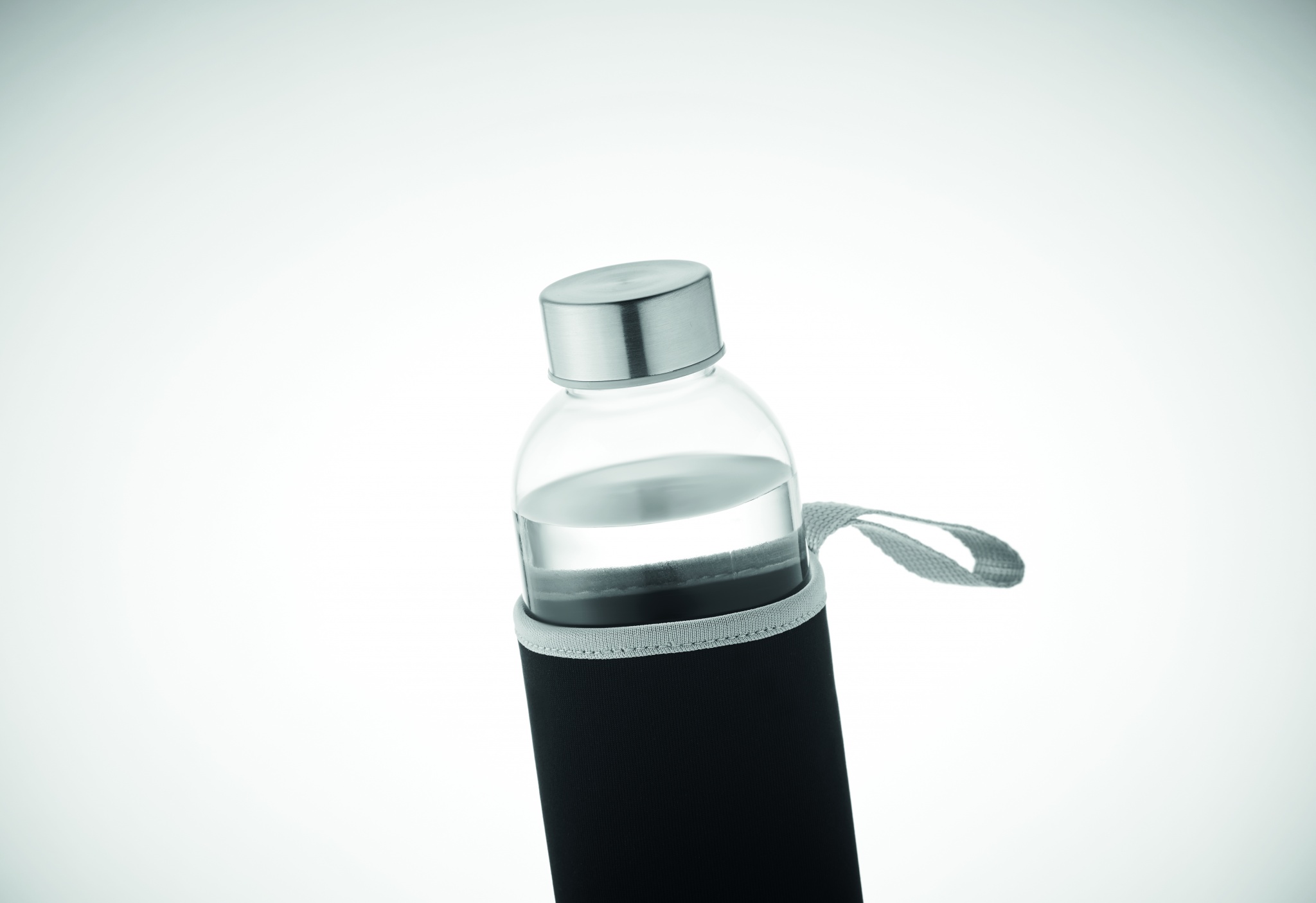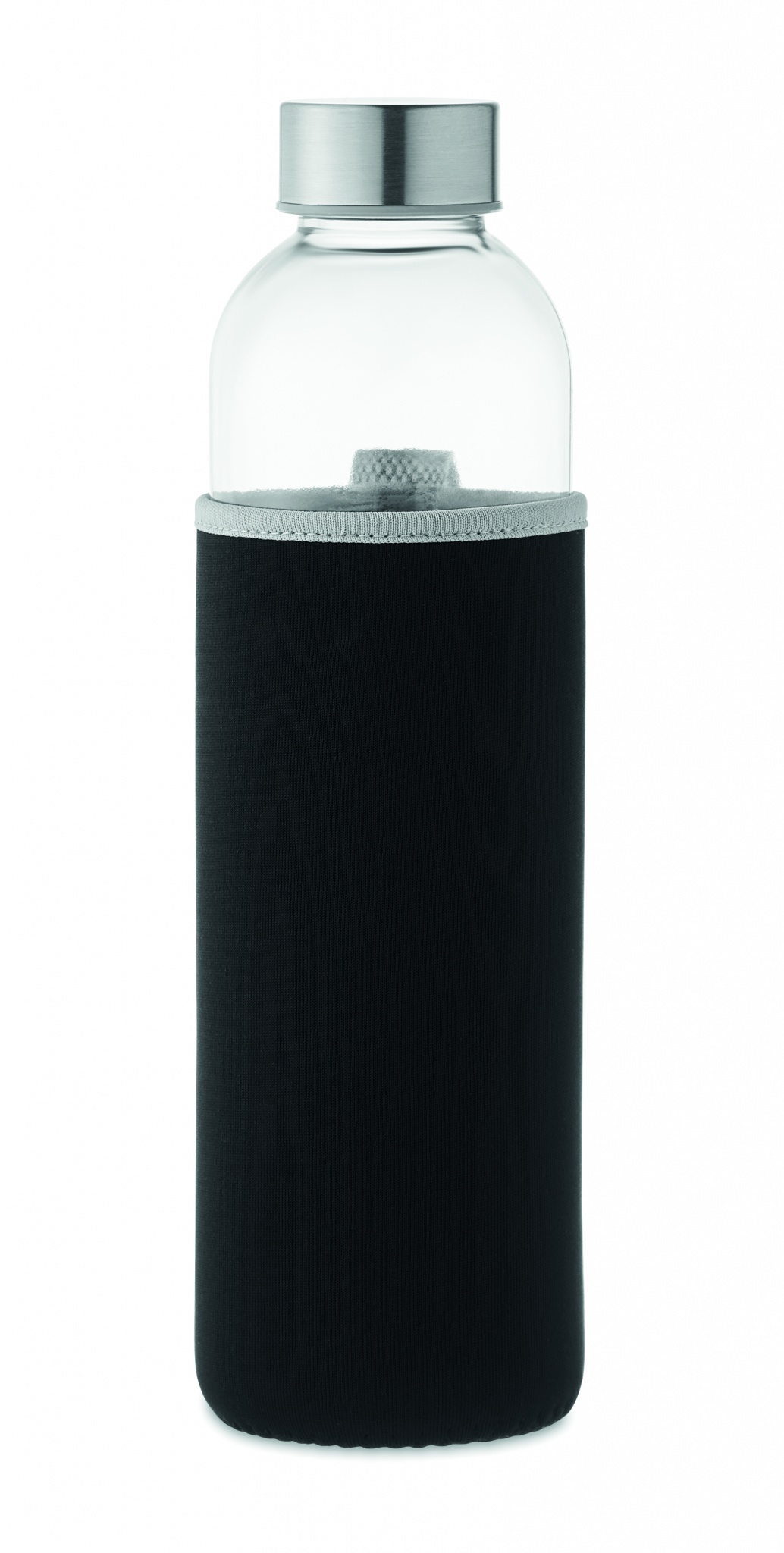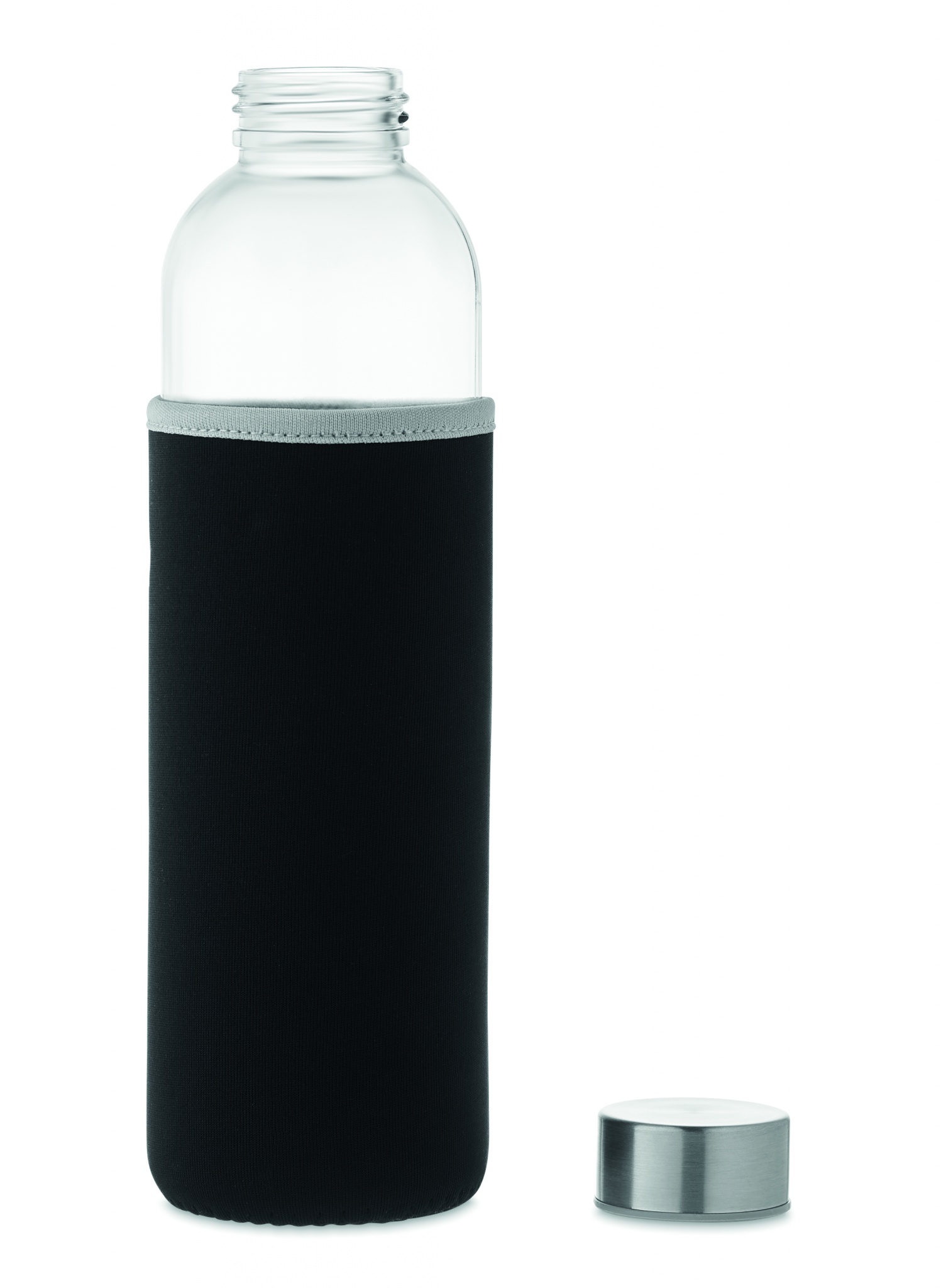 Glass bottle with neoprene pouch in 750 ml. Not suitable for carbonated drinks. Leak free.