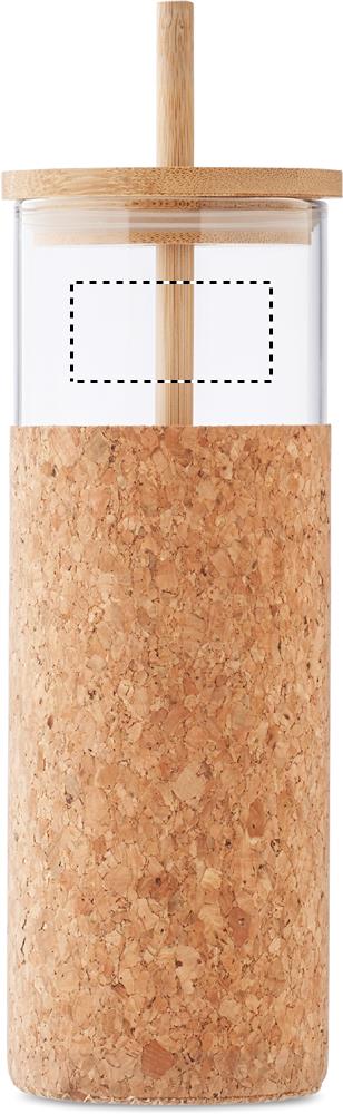 Borosilicate glass tumbler with cork protective sleeve and bamboo lid and straw. Capacity 450 ml. As this is a single wall mug heat transfer can still occur. Bamboo is a natural product, there may be slight variations in colour and size per item, which can affect the final decoration outcome.