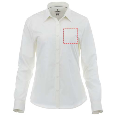 The Hamell long sleeve women's stretch shirt – an ideal combination of style and comfort. This woven shirt features a lightweight poplin fabric of 97% cotton and 3% elastane. Poplin fabric is known for its tight weave, which provides exceptional durability while maintaining a soft and smooth texture against the skin. This means that the Hamell shirt is not only comfortable to wear but also resistant to everyday wear and tear, ensuring long-lasting use. The added stretch provides ultimate freedom of movement, ensuring optimal comfort throughout the day even more. Its hidden button-down collar adds sophistication while maintaining a clean look. This shirt is designed with a fitted shape for a feminine look.