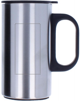 Double wall stainless steel insulating vacuum flask and 2 pieces 220 ml mugs. Capacity: 500 ml.