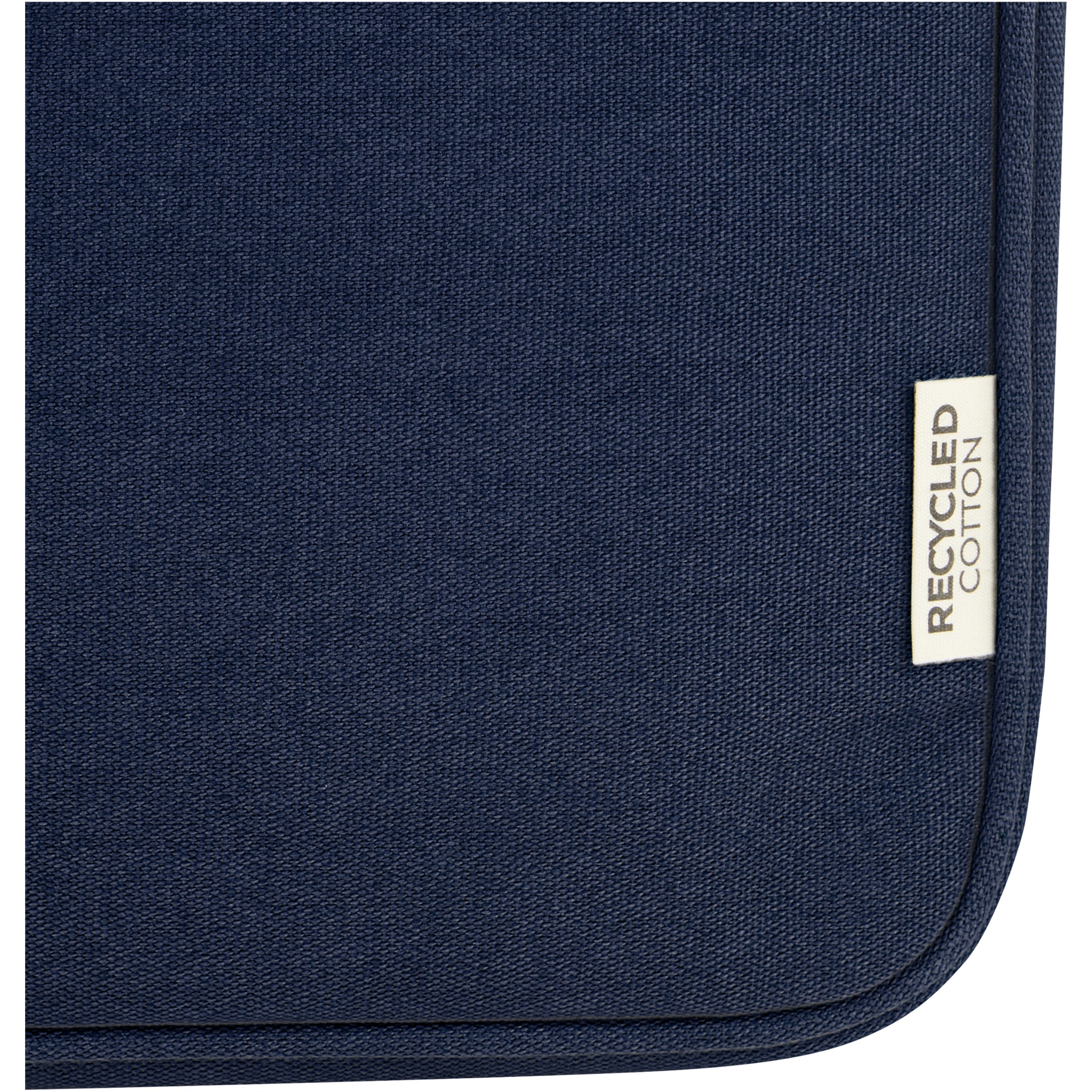 Composed with highly durable and sustainable materials, GRS recycled canvas and GRS RPET lining, the Joey 14" laptop sleeve features a protected laptop compartment, and an open front pocket with hook & loop closure. The decorative metal plate can make a logo shine through its subtle and matt finish.