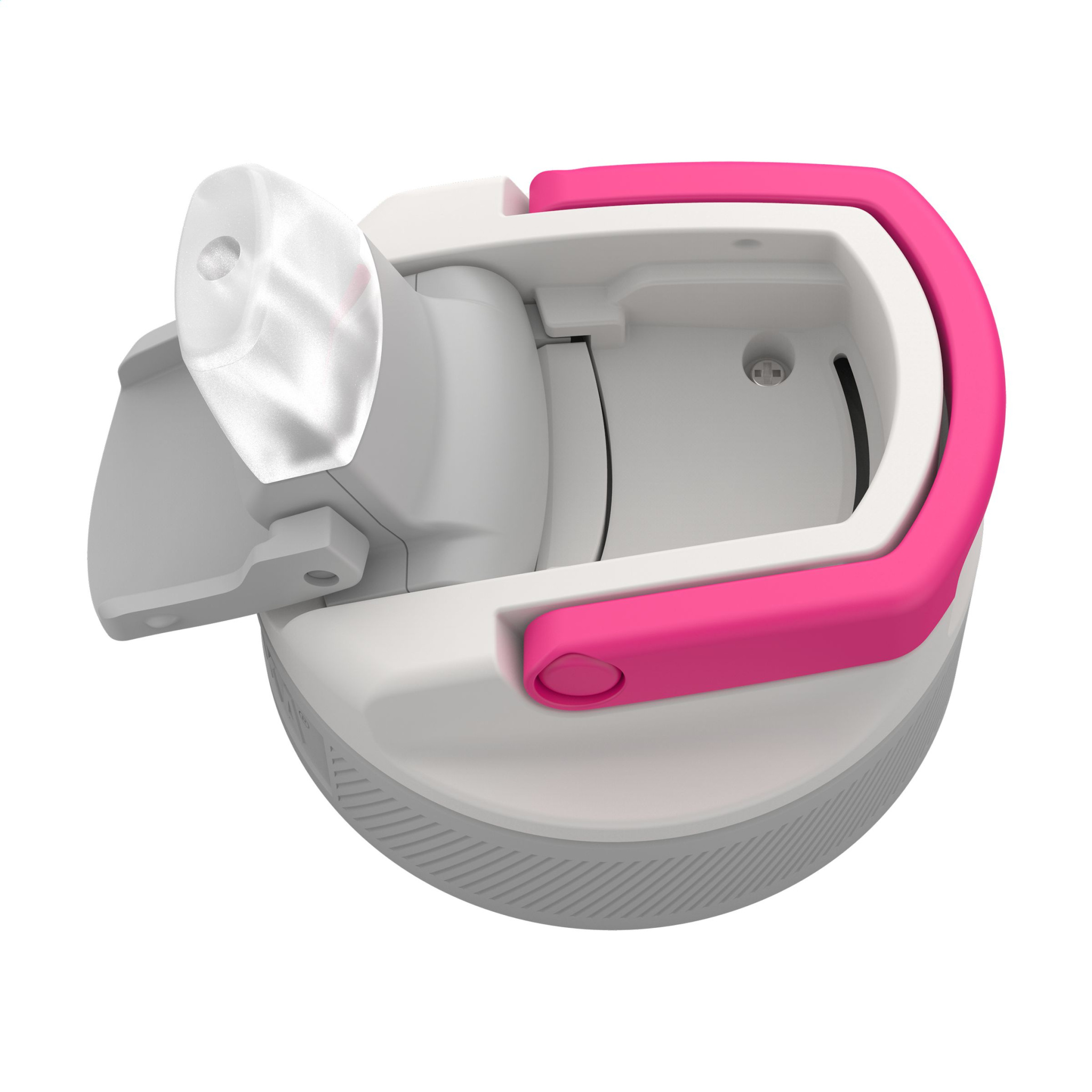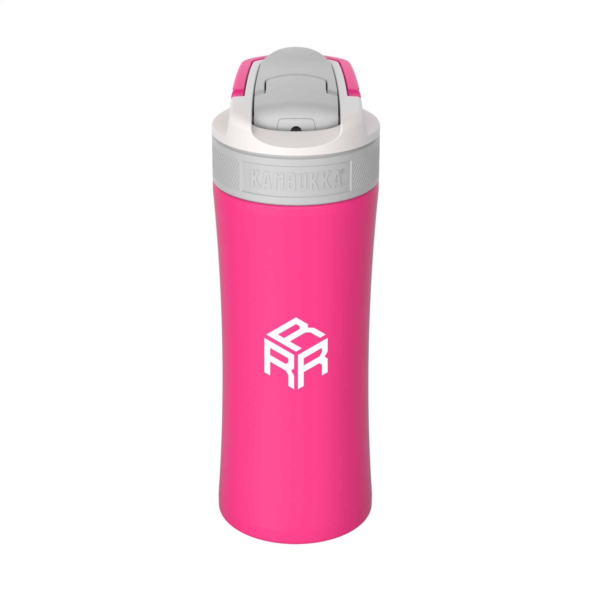 Durable, vacuum insulated 18/8 stainless steel water bottle made by Kambukka®. Thanks to the Spout lid with a drinking spout and angled straw, you don’t have to tilt your head to finish your drink. Safe and easy during activities. When closed, the drinking spout is protected from dirt. • Excellent quality • BPA-free • keeps drinks cool for up to 17 hours • universal lid: also fits on other Kambukka® drinking bottles • the lid is heat-resistant and dishwasher-safe • non-slip base • 100% leakproof • contents 400 ml. This drinking bottle is particularly suitable for (school-aged) children. The pink water bottle (1123.62) cannot be provided with a laser engraving. STOCK AVAILABILITY: Up to 1000 pcs accessible within 10 working days plus standard lead-time. Subject to availability.