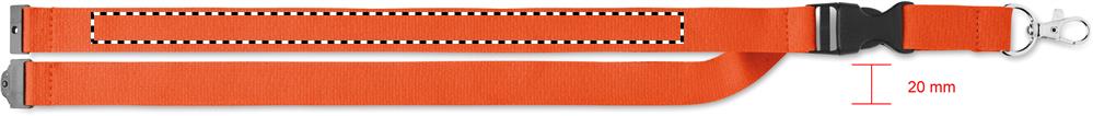 Cotton lanyard with metal hook, detachable buckle and safety breakaway. 20 mm wide.