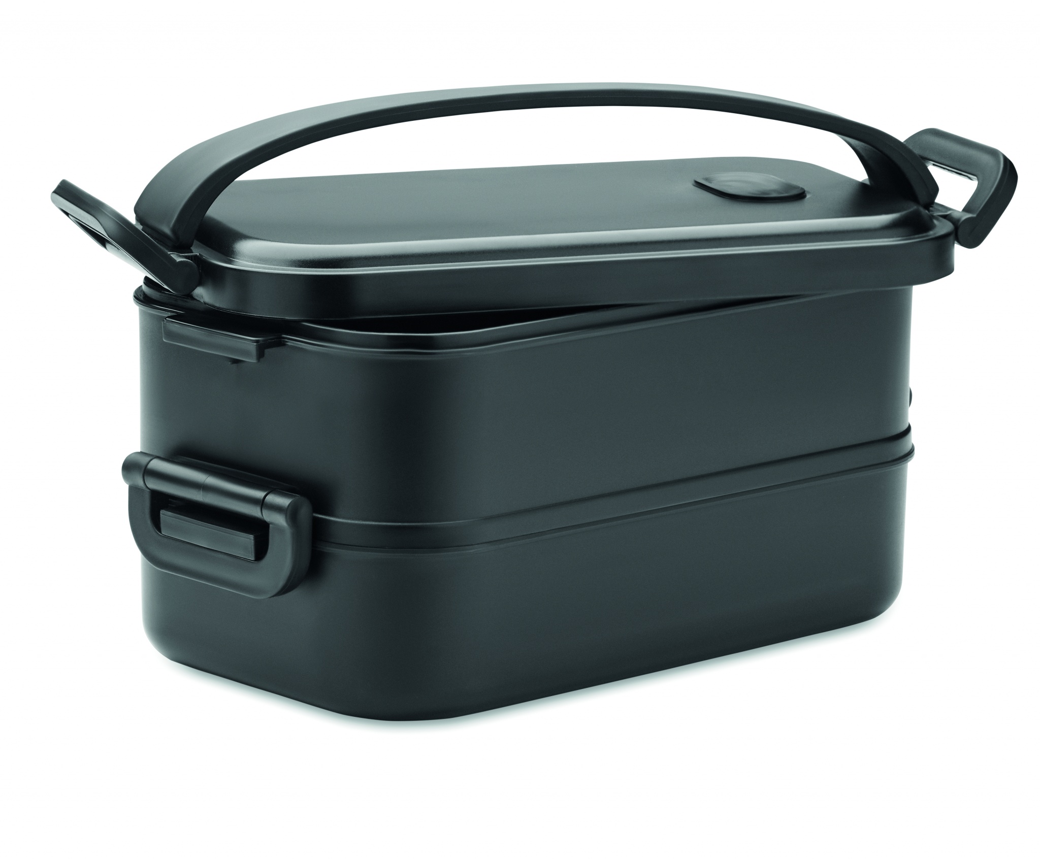 Recycled PP two-tier lunch box with removable divider with side buckles and airtight lid. Capacity: 800 ml (2x).