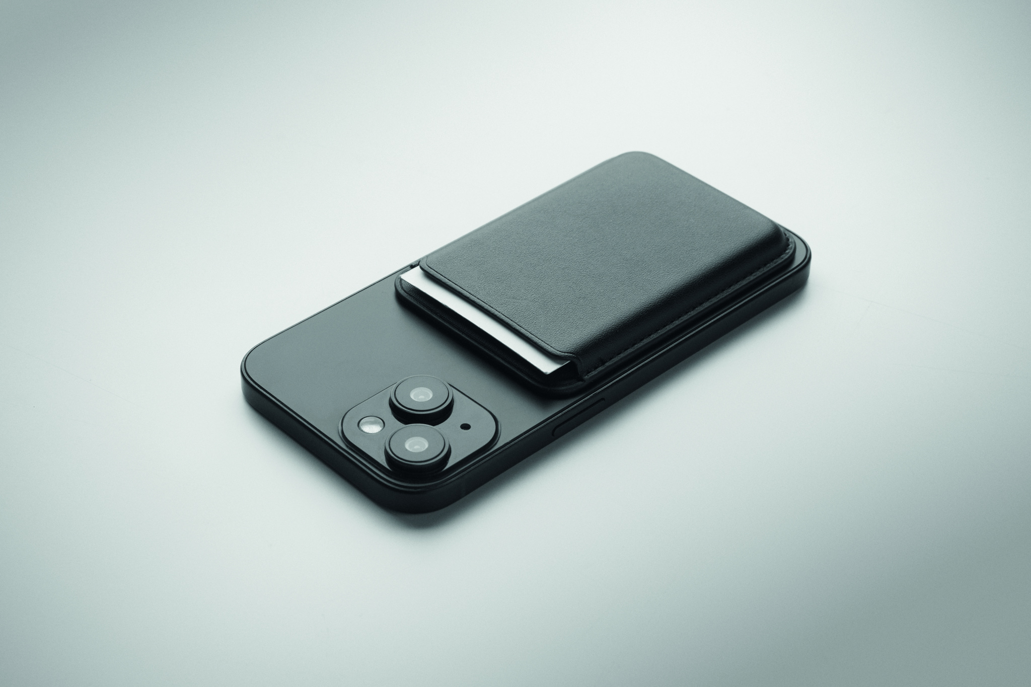 Magnetic PU leather credit card holder (for 3 cards). It includes an additional metal ring.