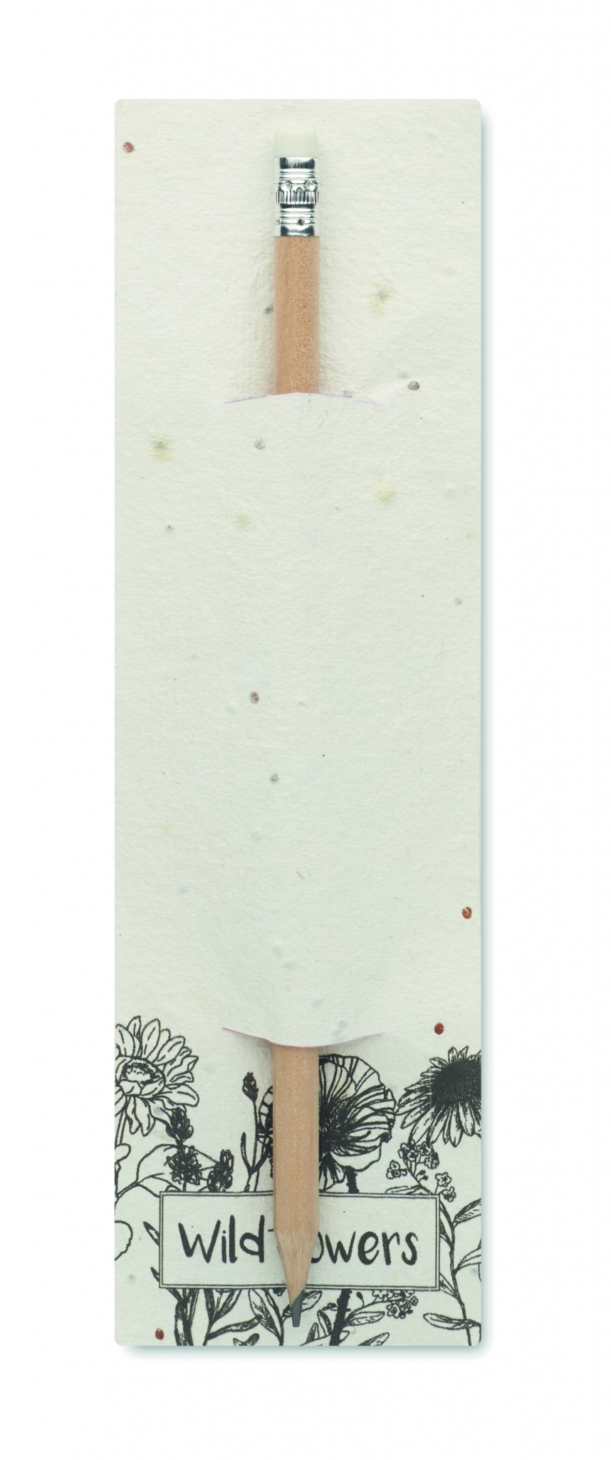Natural wood pencil with eraser. Presented in seed paper ( wildflowers) pouch.