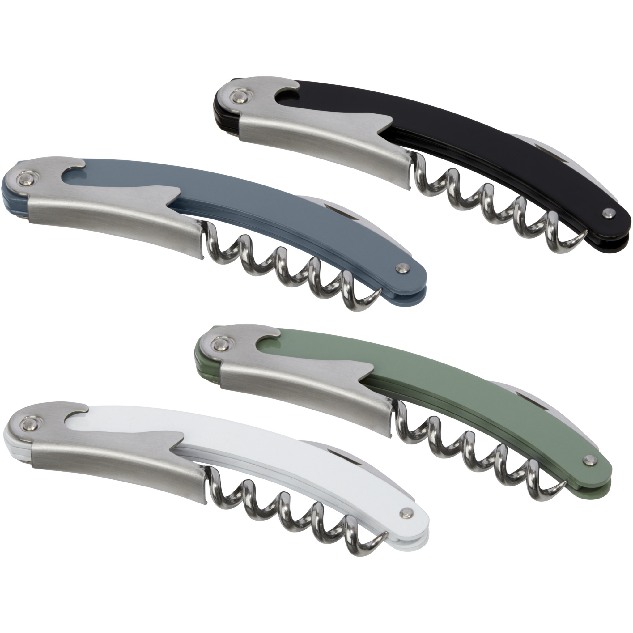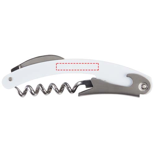 Stainless steel waitress knife with a coloured body featuring a foil cutter and bottle opener.