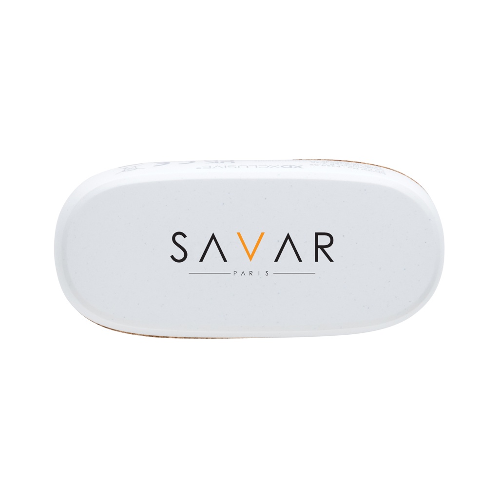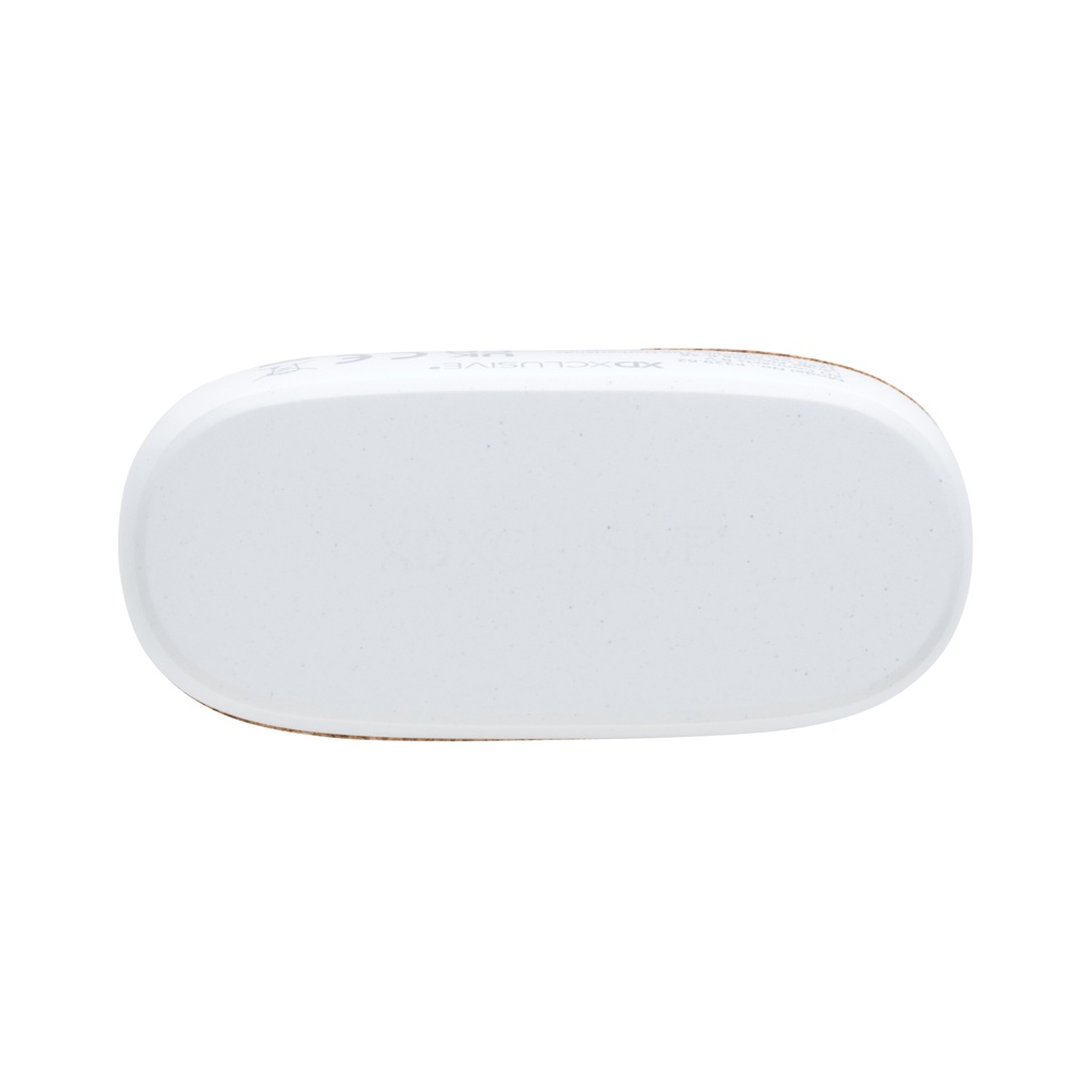 Elegant design wireless earbuds made with FSC® 100% cork and RCS (Recycled Claim Standard) certified recycled ABS. Total recycled content: 35% based on total item weight. RCS certification ensures a completely certified supply chain of the recycled materials.The perfectly fitting earbuds have a 35 mAh battery and can be re-charged in the 300 mAh charging case within 1.5 hours. With auto pairing function so easy to pair to your mobile device. Playing time on medium volume about 3 hours. With BT 5.3 for optimal connection. Operating distance up to 10 meters. With pick up and mic. Including 3 size silicone ear tips. Including RCS certified recycled TPE charging cable. Packed in FSC® mix kraft packaging. Item and accessories 100% PVC free.