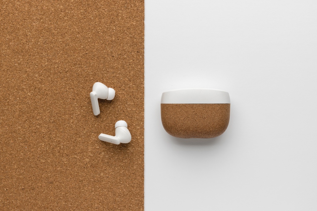 Products Small Giveaways Oregon RCS recycled plastic and cork TWS earbuds