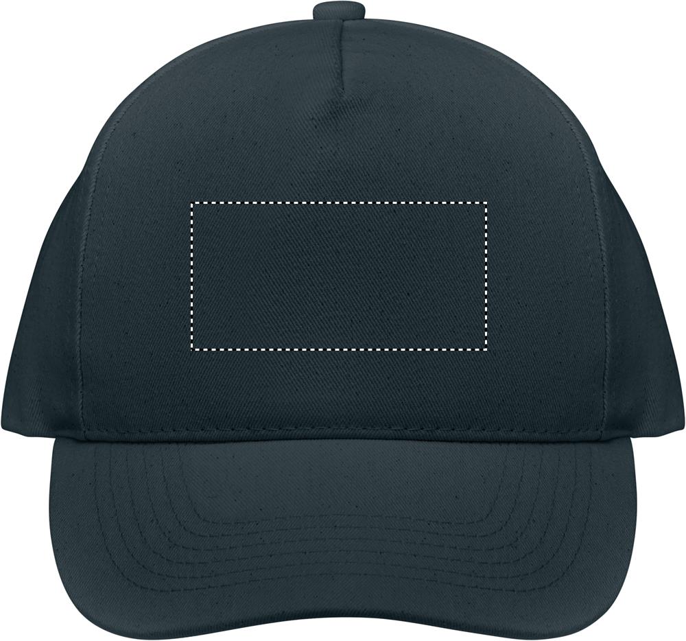 5 panel baseball cap in 250 gr/m² organic brushed cotton with metal adjustable strap back buckle closure.