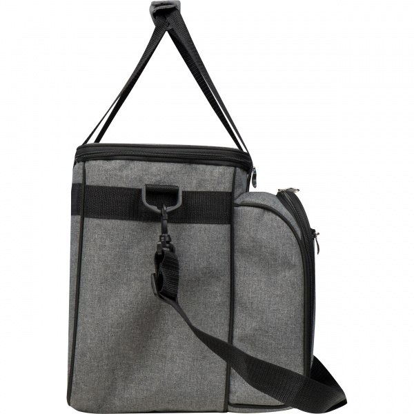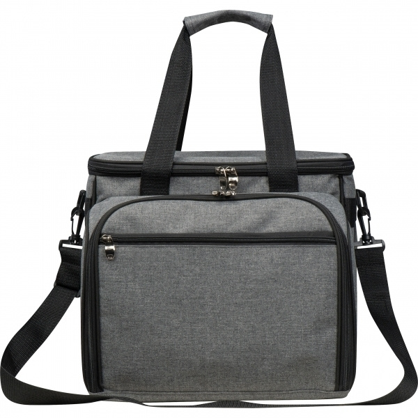 Picnic bag for 4 people with handle and shoulder strap. There is also a cooling compartment in the picnic bag, which cools your food and drinks even on warm days. Plates and cutlery for 4 people. We'll print your logo on the bag.